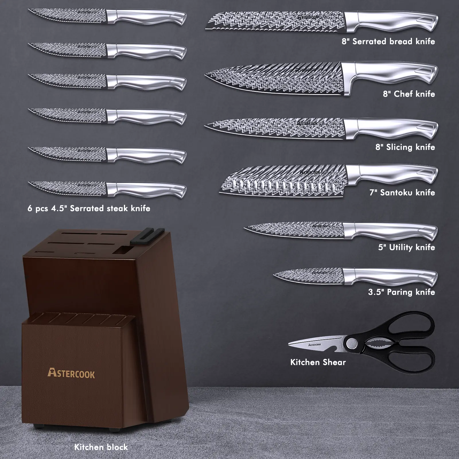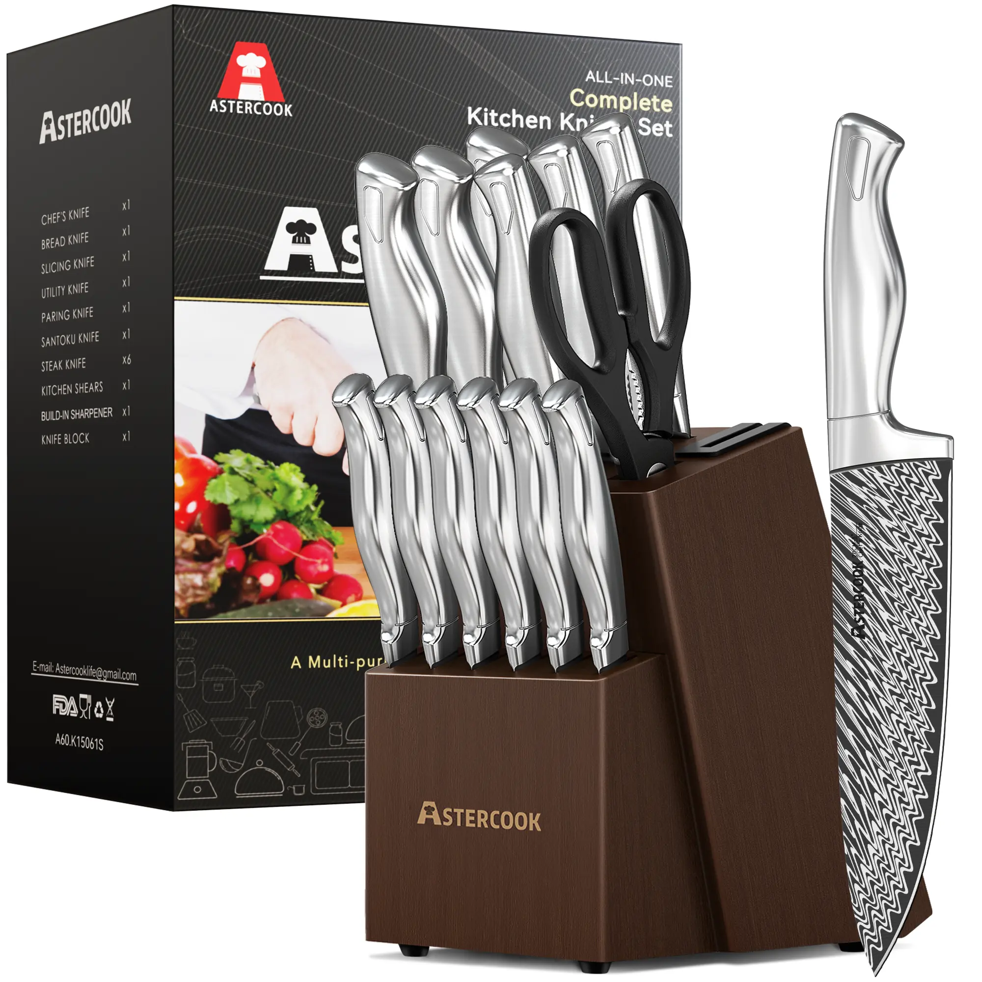 Astercook Knife Set 15 Piece #knives #knifeset #kitchenknives #kitchen #cooking #astercook #tiktokshopbacktoschool #dealsforyoudays @Astercook USA