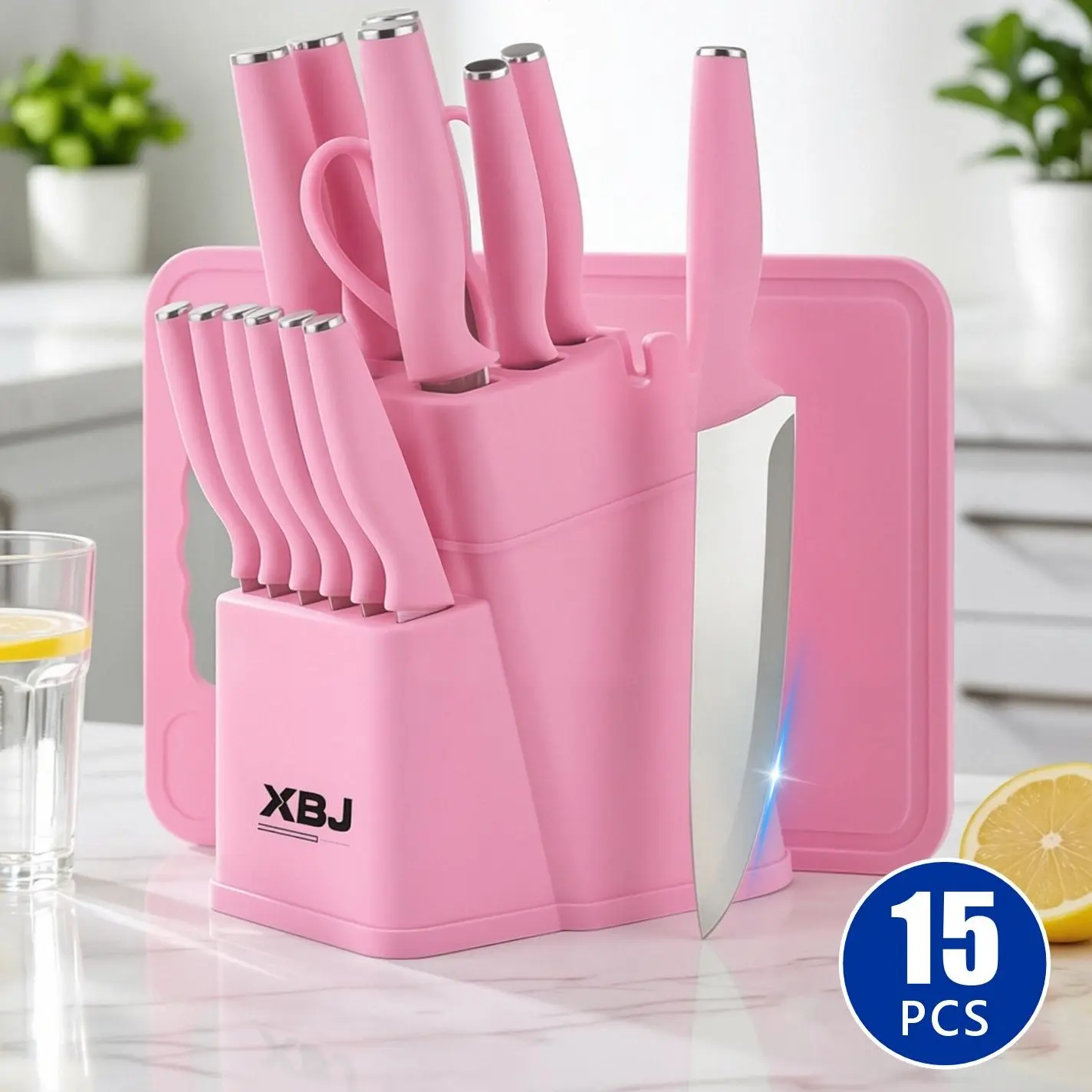 ·Solid Wood & Plastic Knife Block: This set includes a solid wood and plastic knife block, perfect for home storage. 🌳