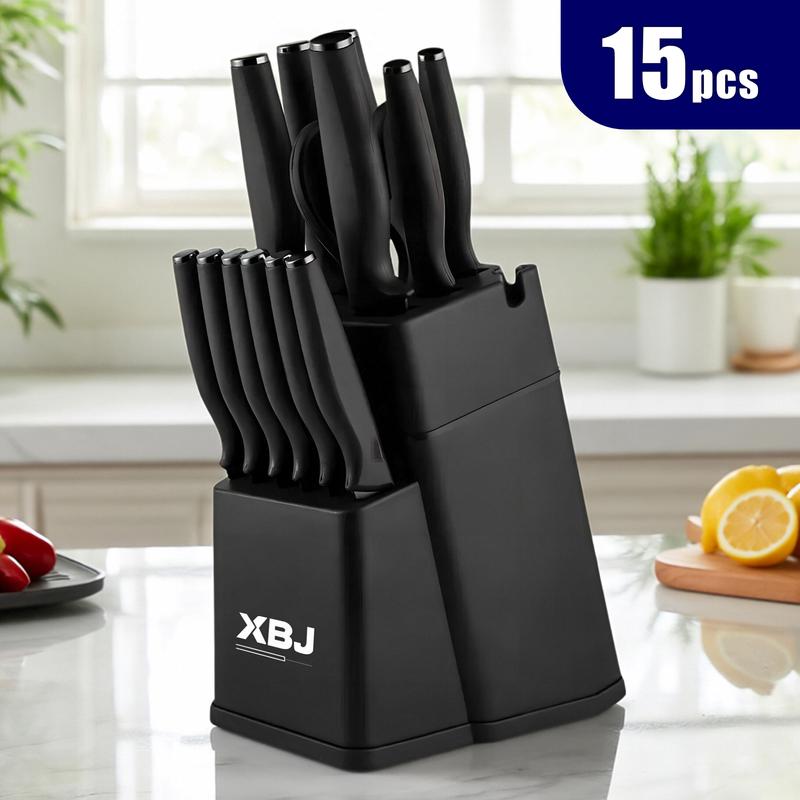 🌟 15-Piece Kitchen Knife Block Set 🌟