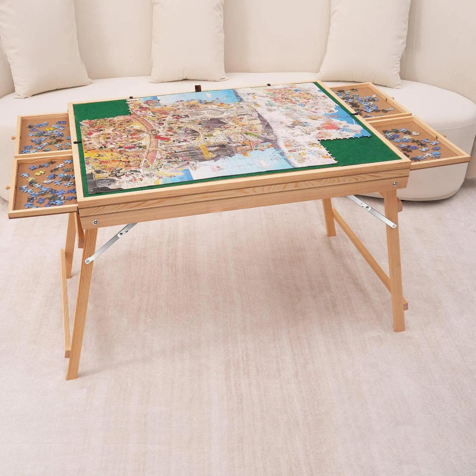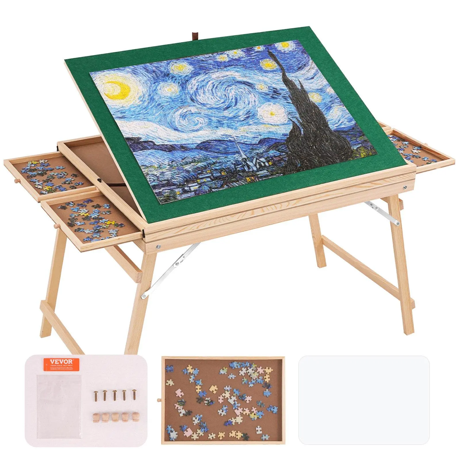 ·Standard Jigsaw Puzzle Table Set: Our puzzle table set is designed to accommodate most 1500-piece puzzles. It comes with 1 transparent PP cover plate and 4 puzzle drawers, offering a convenient and efficient way to craft beautiful puzzles. Designed for puzzle enthusiasts of all ages, it's perfect for family gatherings, friends' parties, and accompanying children, allowing you to easily enjoy a delightful puzzle-making experience.