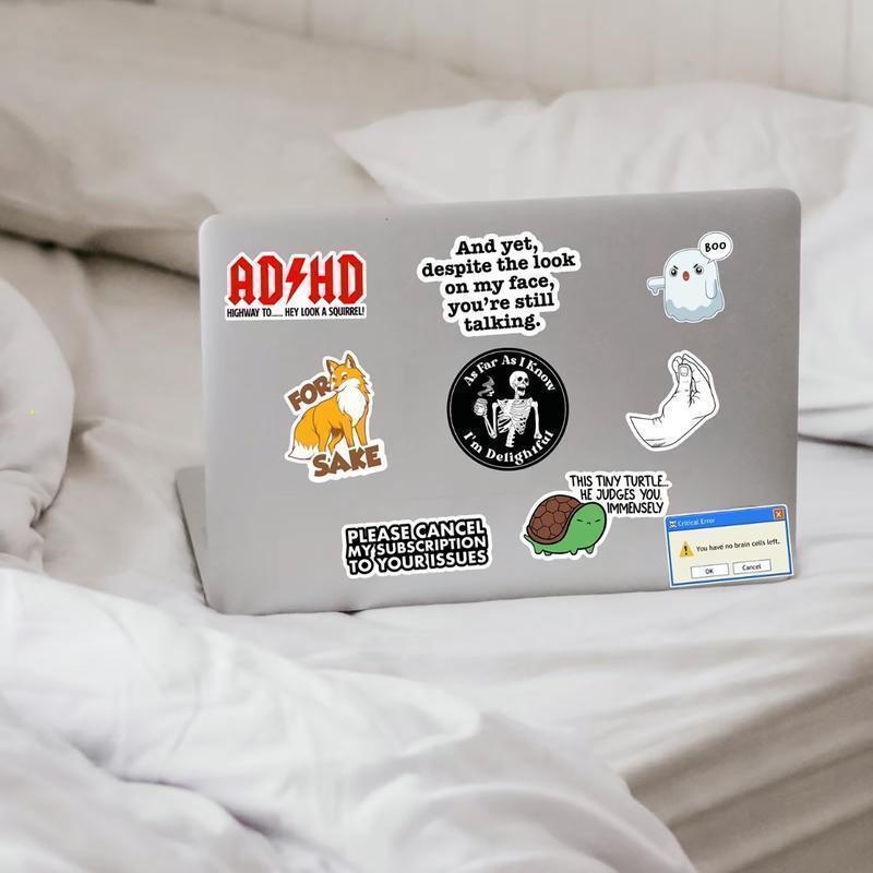Made from waterproof vinyl, these decals are durable and long-lasting. The versatile use makes them suitable for laptops, phones, cars, and hydro flasks. These stickers are not only functional but also add a humorous touch to any item.