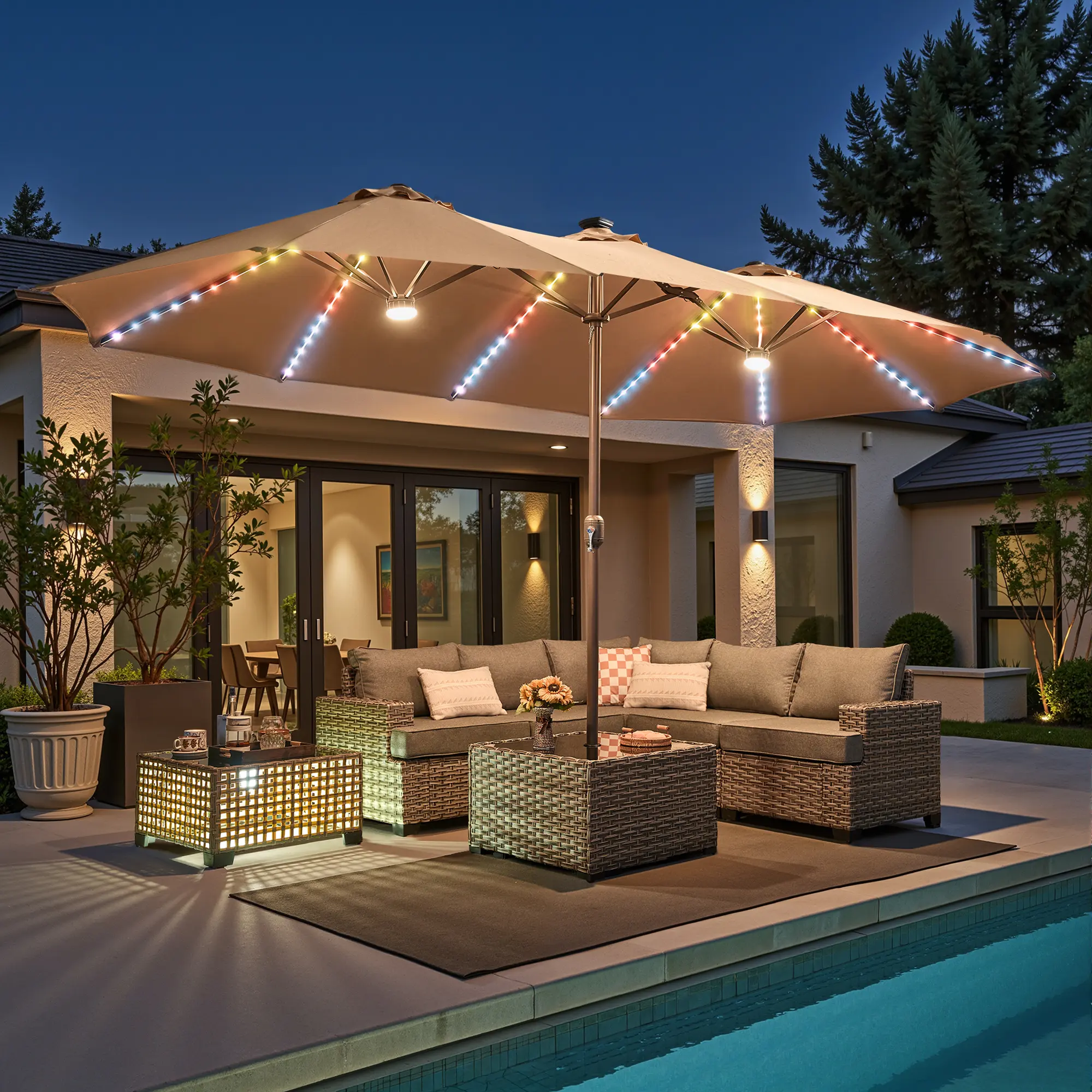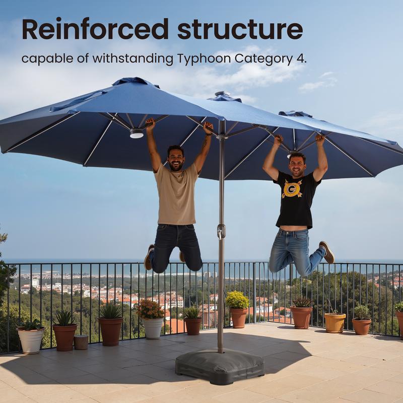 ·Large Shading with Double Sided: This patio umbrella measures 15 x 9 x 8 ft(L x W x H), providing a large shading area of 135 sq. Ft for your outdoor activities, enjoy more comfort and coolness