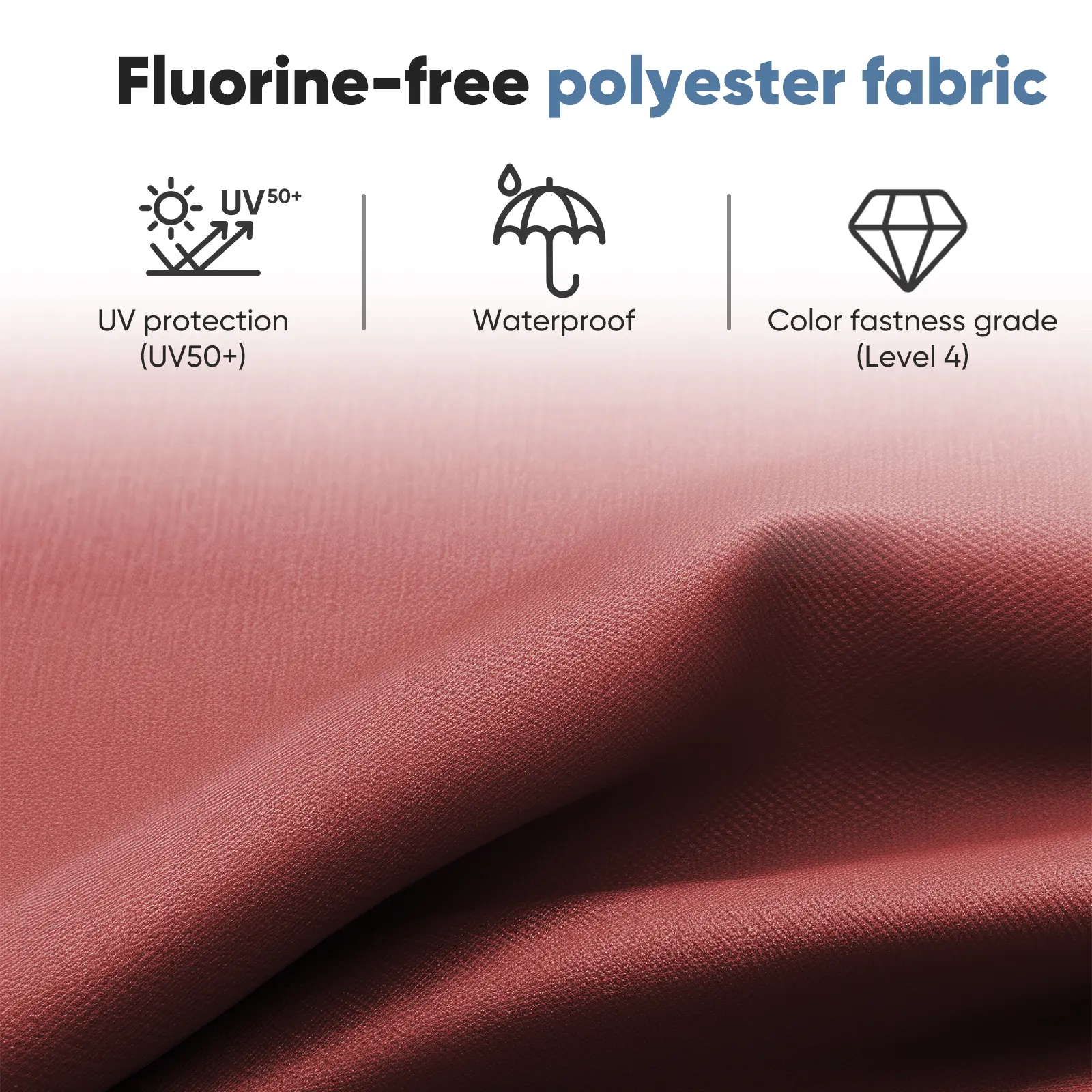 ·High quality material: The outdoor umbrella for patio is made of 180g non-fluorinated polyester fabric, sun protection index UV50+.The color fastness level can reach American standard level 4. All the plastic parts on the umbrella are all made of brand new material, no added back material, higher strength and more durable, longer service life.