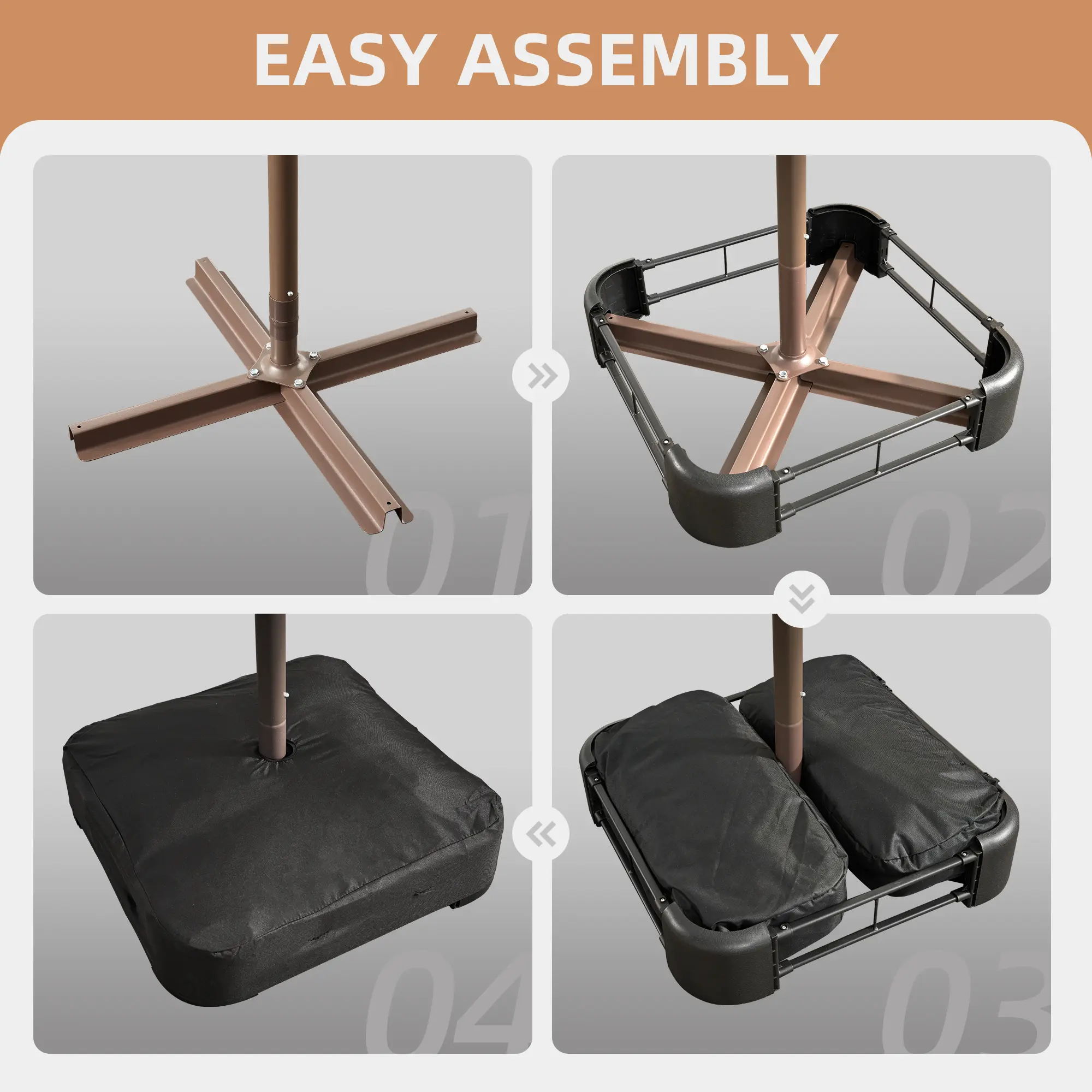 💪 Comes with a durable cross base, reinforced pole, and two sandbags (fillable with 100–180 lbs each). The protective cover keeps the umbrella stable in breezy conditions. Enjoy added peace of mind with this secure setup.