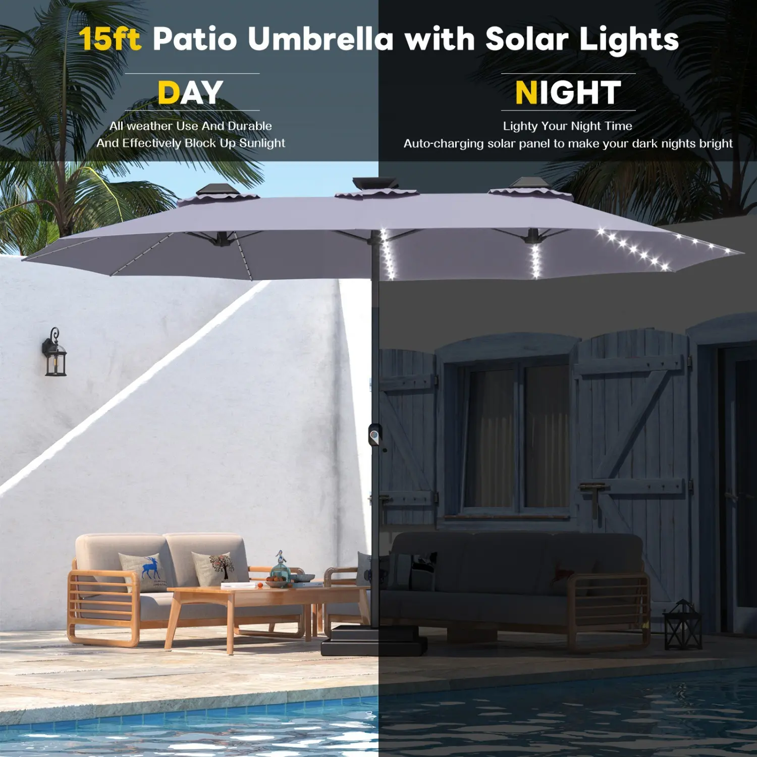 🌞 HOOOWOOO 15FT Large Patio Umbrella