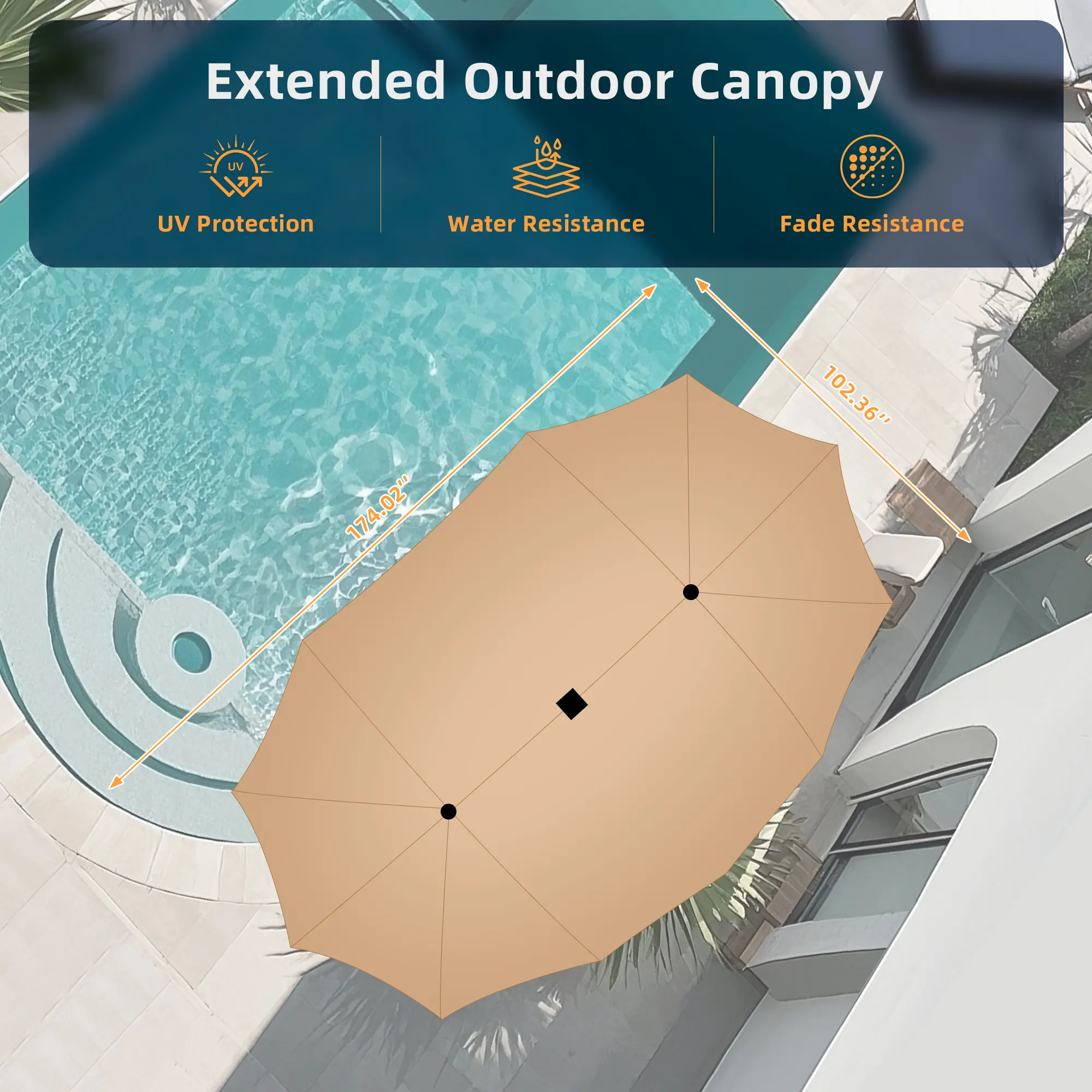✨ Our 15ft x 9ft umbrella provides up to 135 sq ft of shade. Perfect for family BBQs, backyard gatherings, and commercial patios. It creates a cool, comfortable area for outdoor dining, relaxing, or entertaining guests. This umbrella is your go-to for a spacious, shaded seating area.