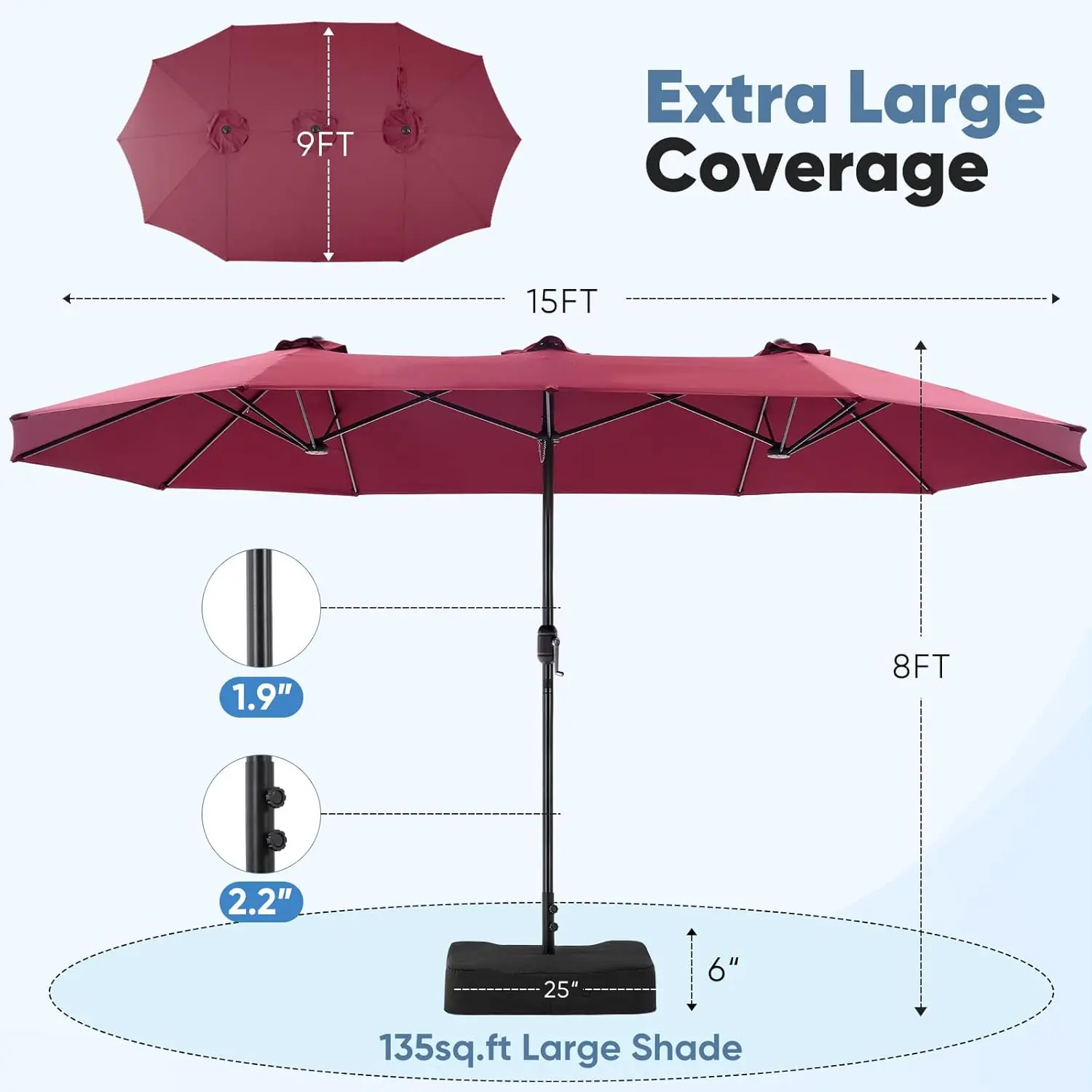 ☀️ 15FT Extra Large Rectangle Patio Umbrella with Base