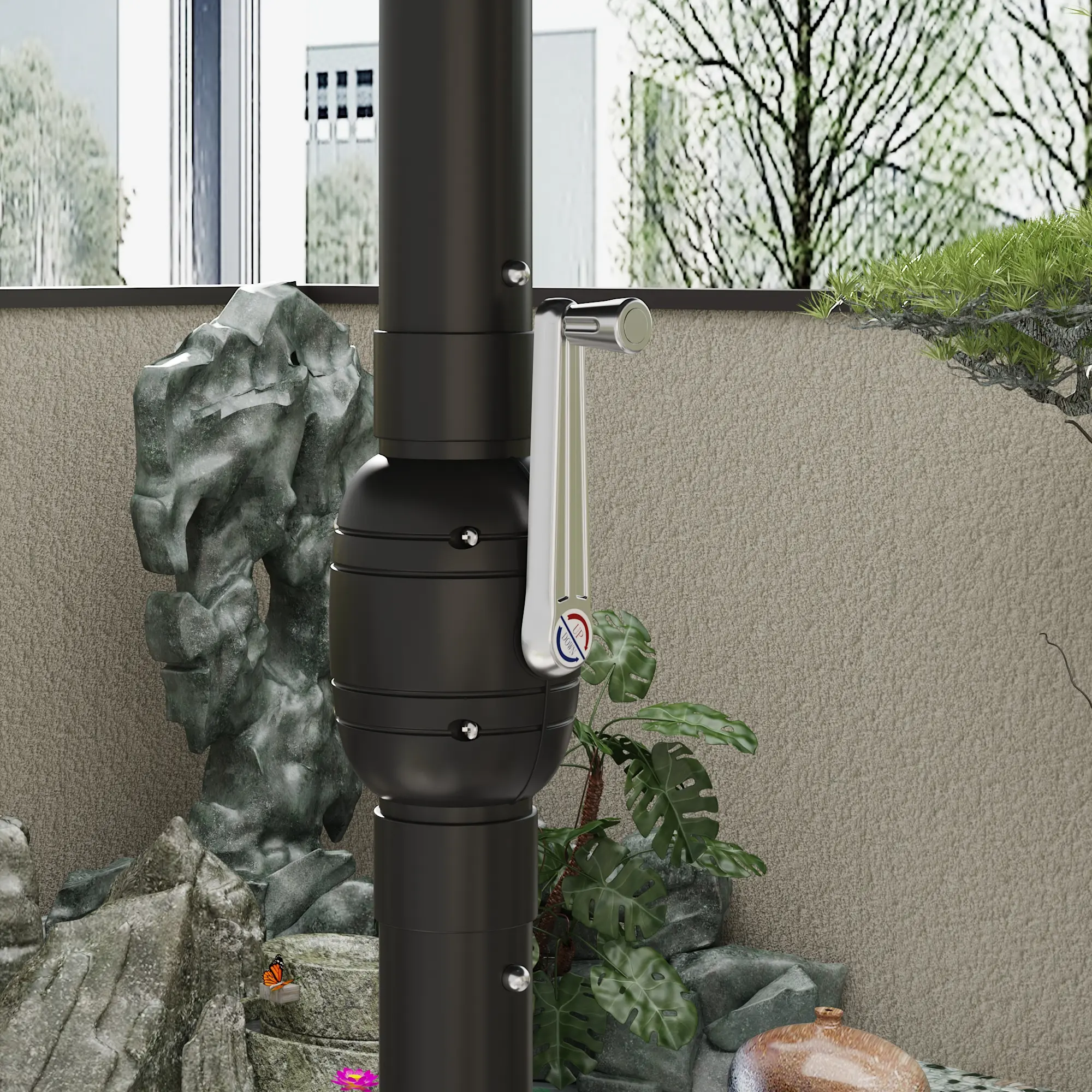 Hand crank: Hand crank is adopted to control the opening and closing of this patio canopy. You can get this square parasol prepared effortlessly and quickly, which is pretty friendly for all kinds of users in different application places.