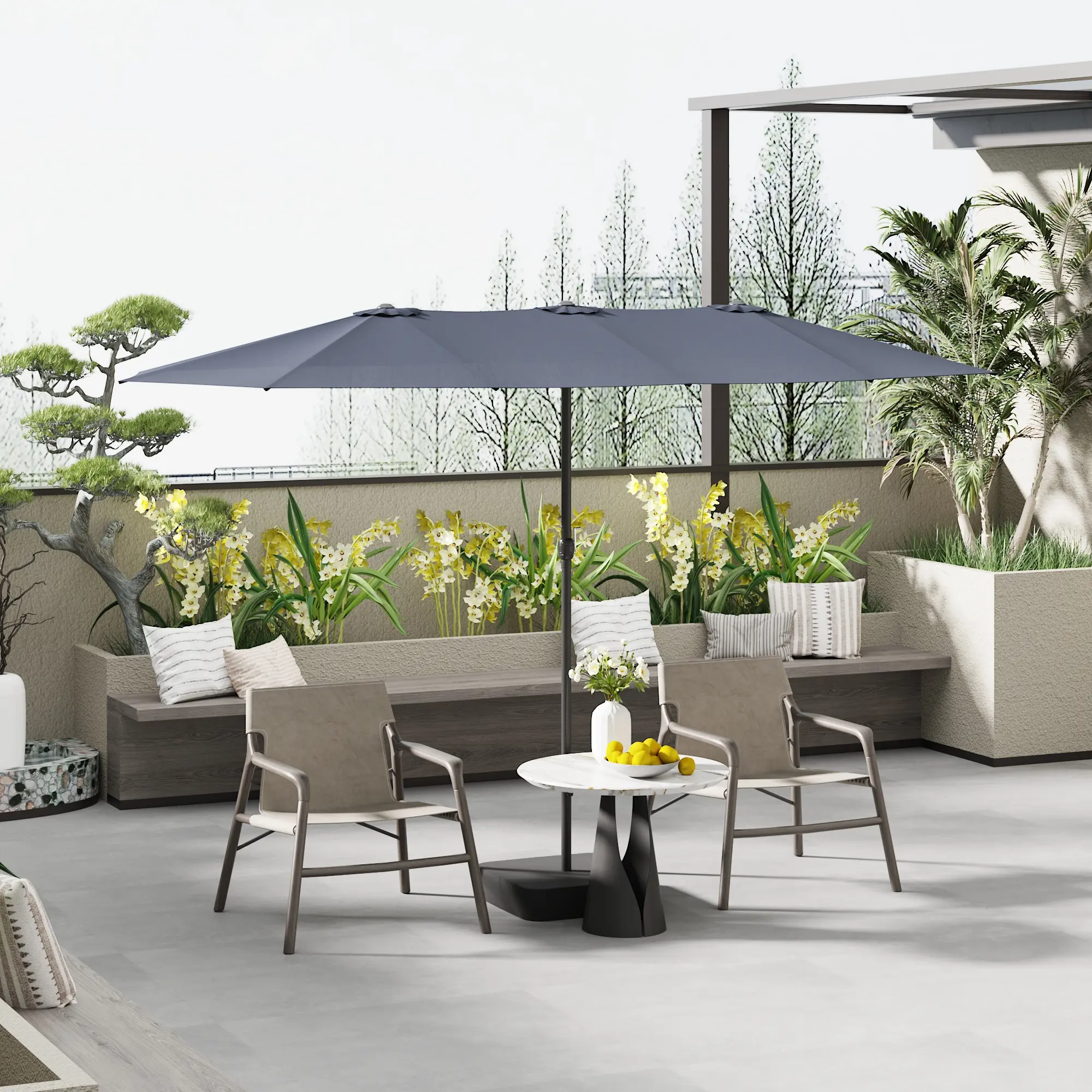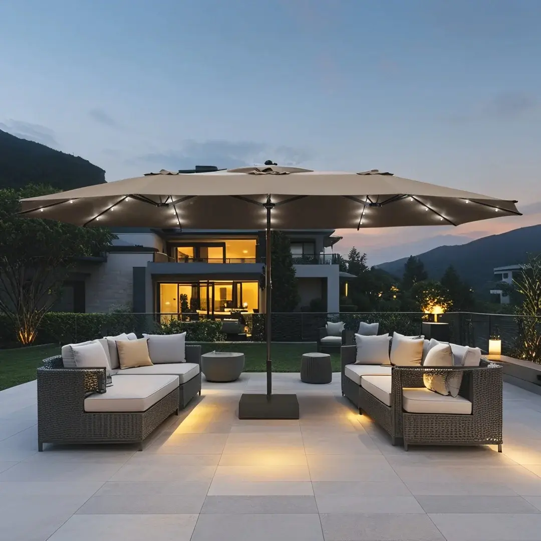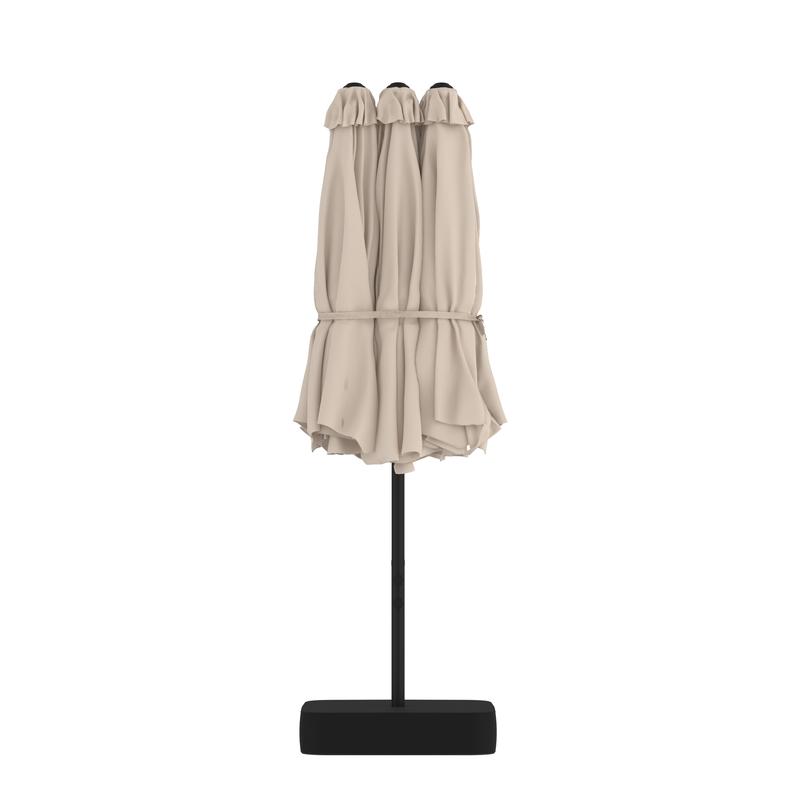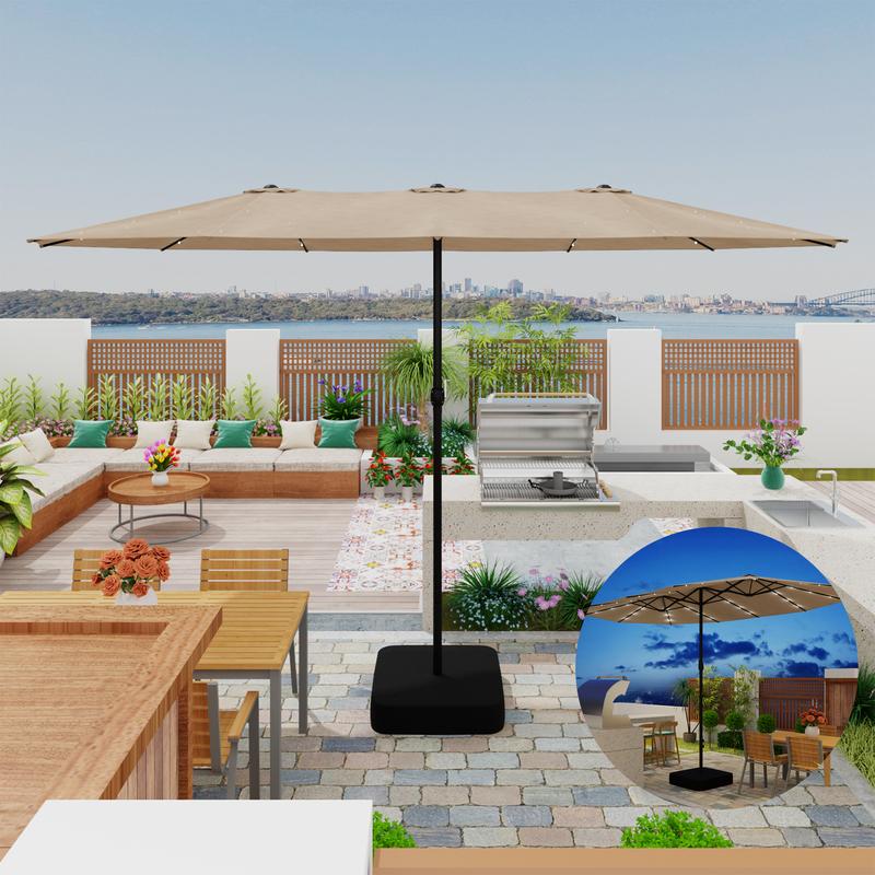 Extended 15ft umbrella: This 15ft large patio umbrella adopts an extended canopy in triple size with 3 ventilation openings, enabling better airflow and ensuring you a cooler user's experience.