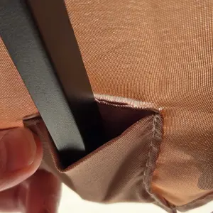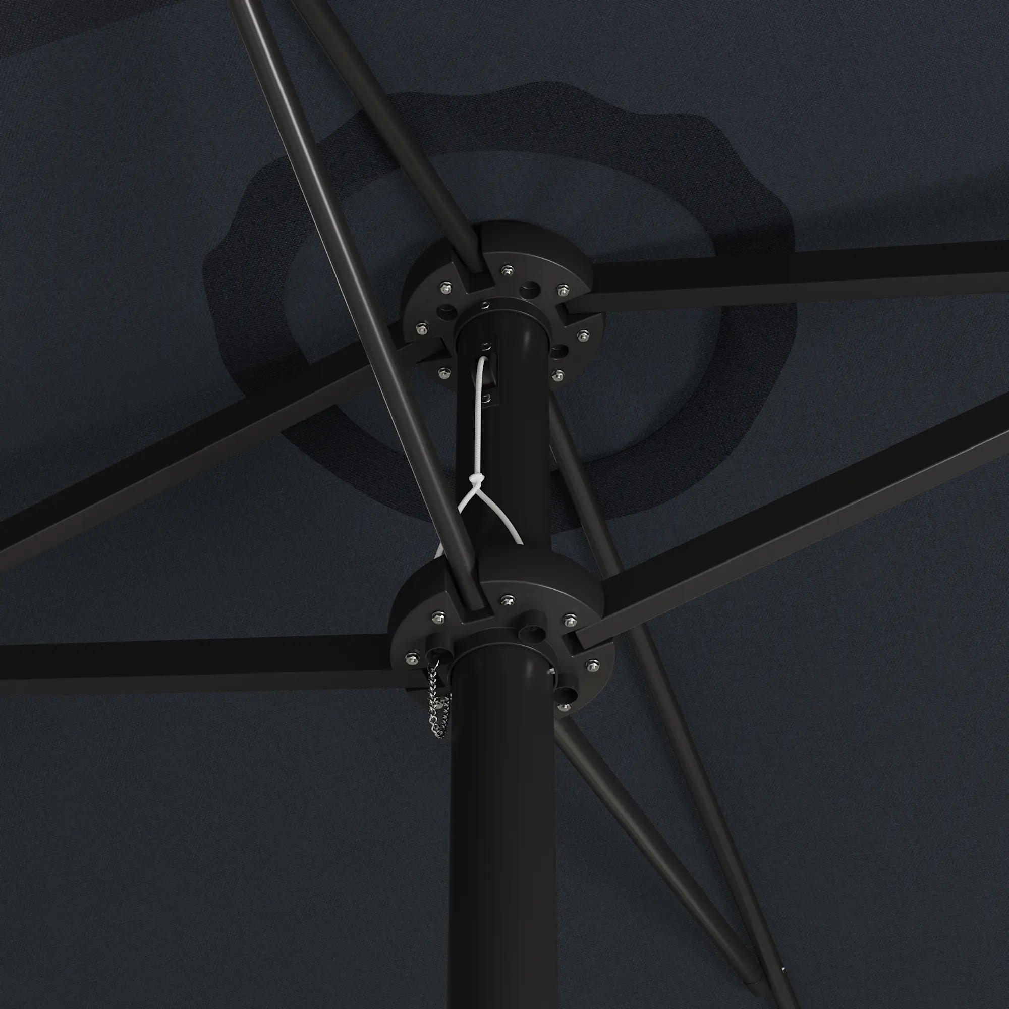 36 solar-powered LED lights: There are 36 LED lights strung along the powder-coated ribs for additional lighting. They are powered by the top solar panel and a solar AA rechargeable battery and have a run time of 8 hours after a full charge. A handy switch on the pole controls the lights.