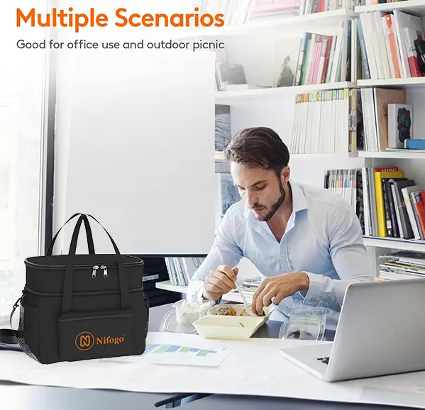 Constructed from reusable insulated material, it securely locks in food temperature, maintaining hot or cold conditions for hours. Say goodbye to lukewarm soup and wilted salads—enjoy fresh meals anytime, anywhere. Its stain-resistant, tear-proof fabric ensures durability. Spills wipe clean effortlessly, and it withstands daily wear, zipper stress, or slight overloading without damage, guaranteeing long-term reliability.