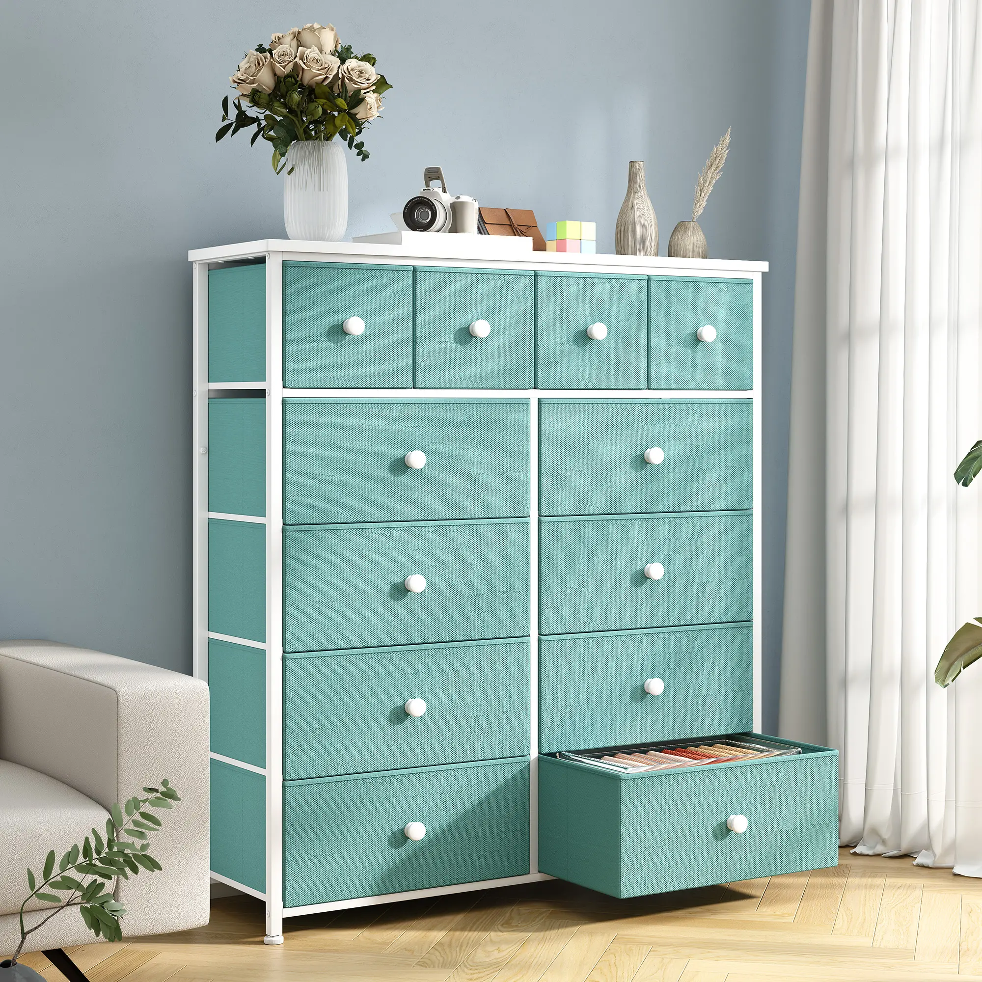 Large Storage Dresser with 3 Types of Drawers for Different Organization