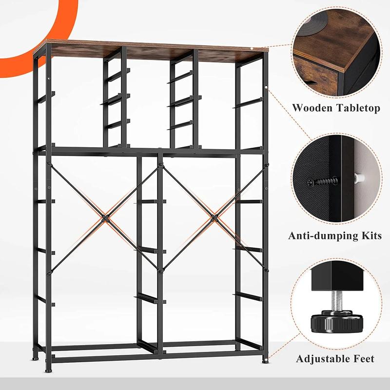 ·【"DOUBLE X" SUPPORT BAR DESIGN OF THE TALL DRESSER】 The structure of tall dressers & chests of drawers is made of advanced metal and wood boards, and the "double X" support bar is designed on the back to provide strong stability and bearing capacity for the large dresser, and each small drawer can accommodate at least 15-18 hats, medium drawer can accommodate at least 9-11 long sleeves, and large drawer can accommodate at least 16-20 shirts.
