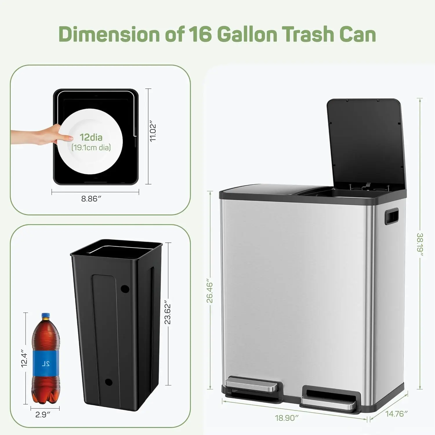 I love this trash can so great for separating trash and recycling it’s easy to clean and take the compartments in and out definitely a great purchase and price.