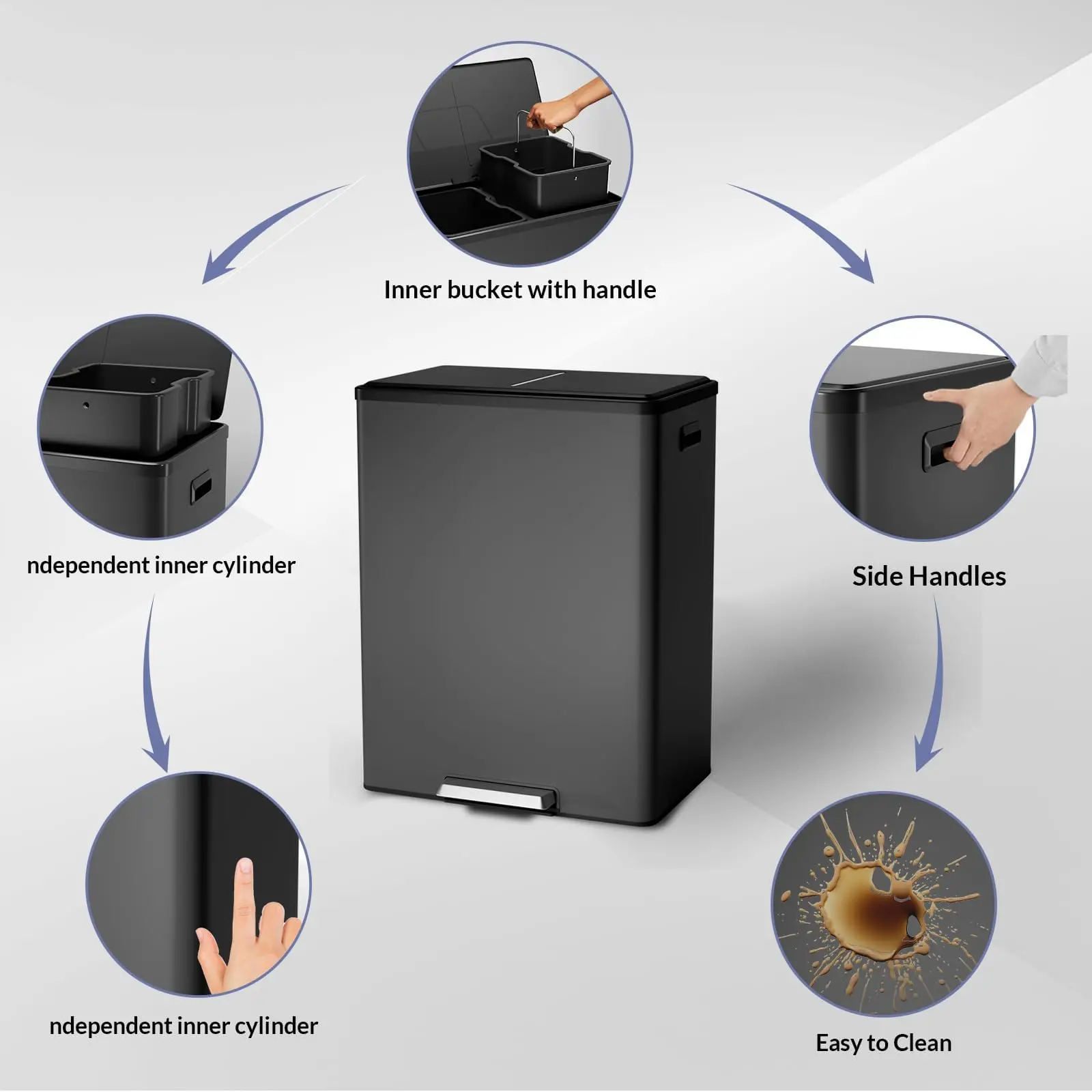 · 【Simplified Recycling】This 60-liter (16-gallon) step-on recycling bin includes two removable 8-gallon bins, making it easy to sort recyclables and waste. Perfect for homes and offices, it promotes efficient waste management.