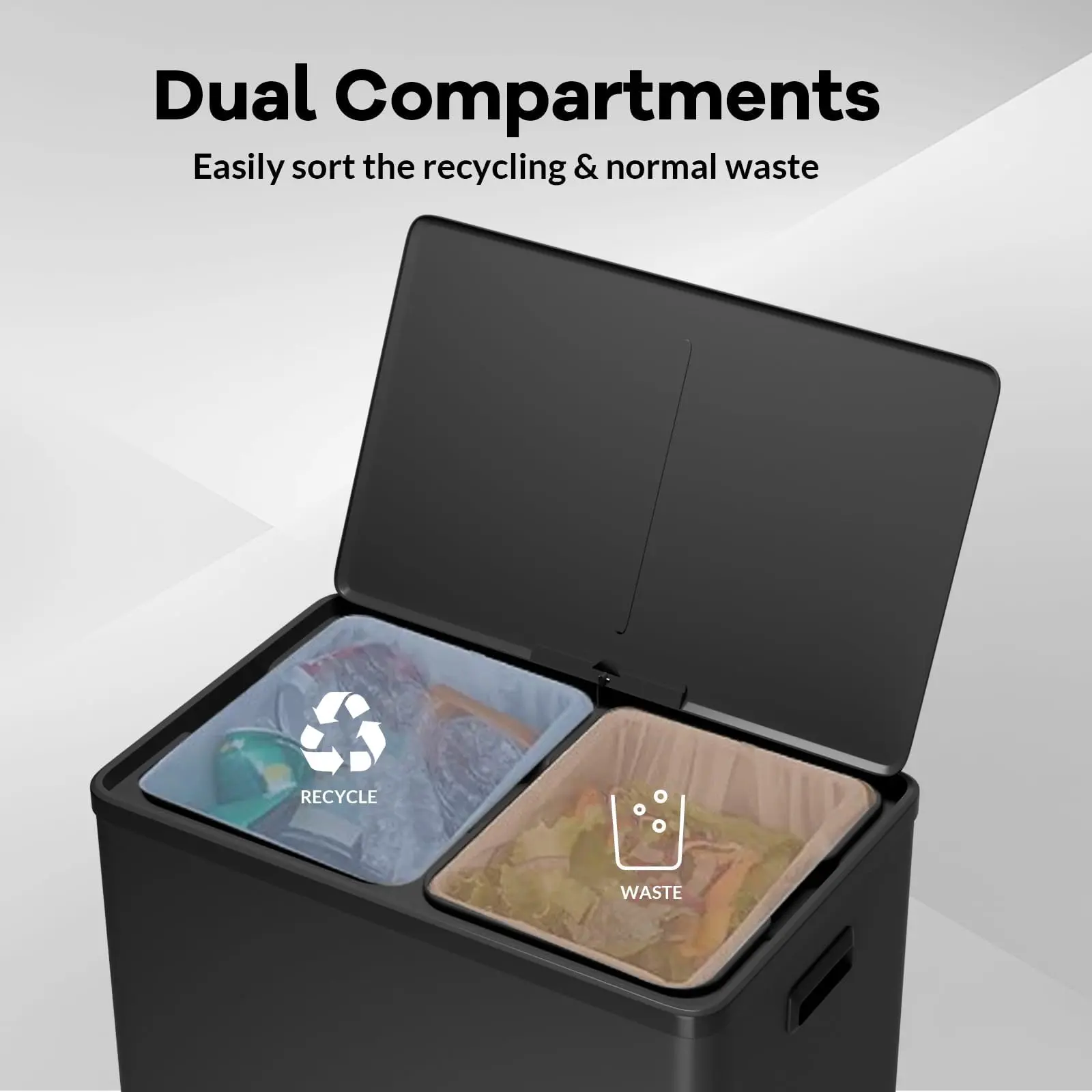 · 【Versatile & Stylish 】Modern aesthetic blends into kitchens, dining areas, or offices, ideal for trash, recycling, or compost.