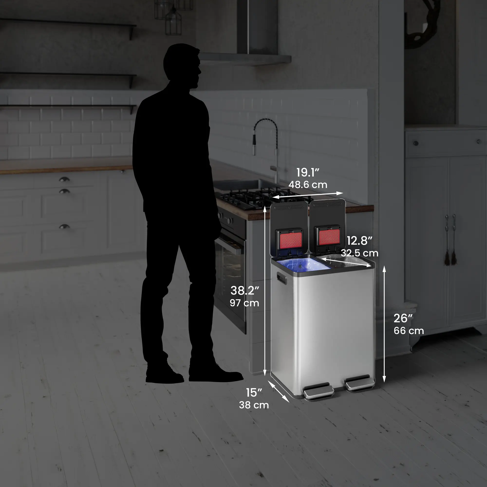 ·Quick and convenient separation of trash & recycling