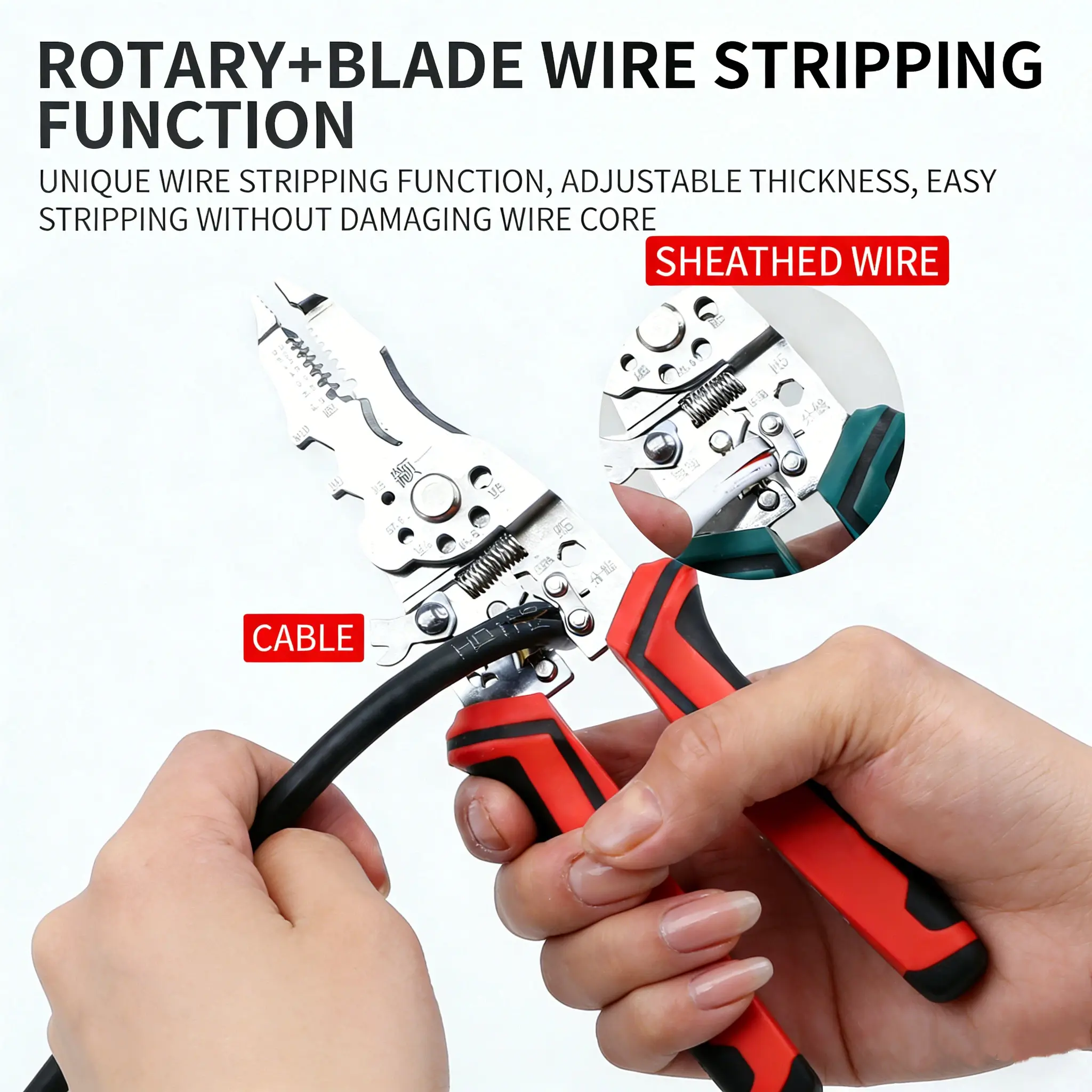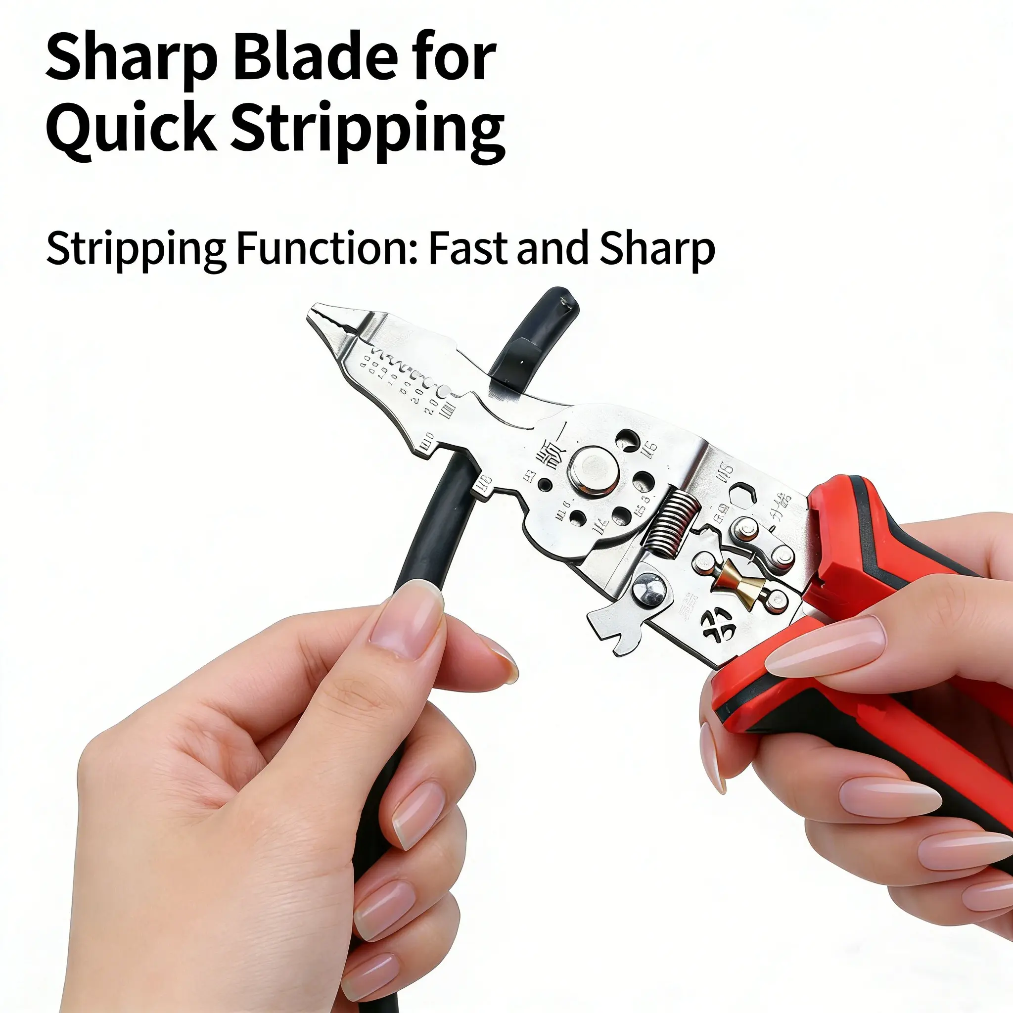 The cable scissors provide precise cutting and stripping. The professional-grade wire stripper crimper ensures reliable connections. Save time and effort with this efficient tool. The high-quality construction guarantees durability and