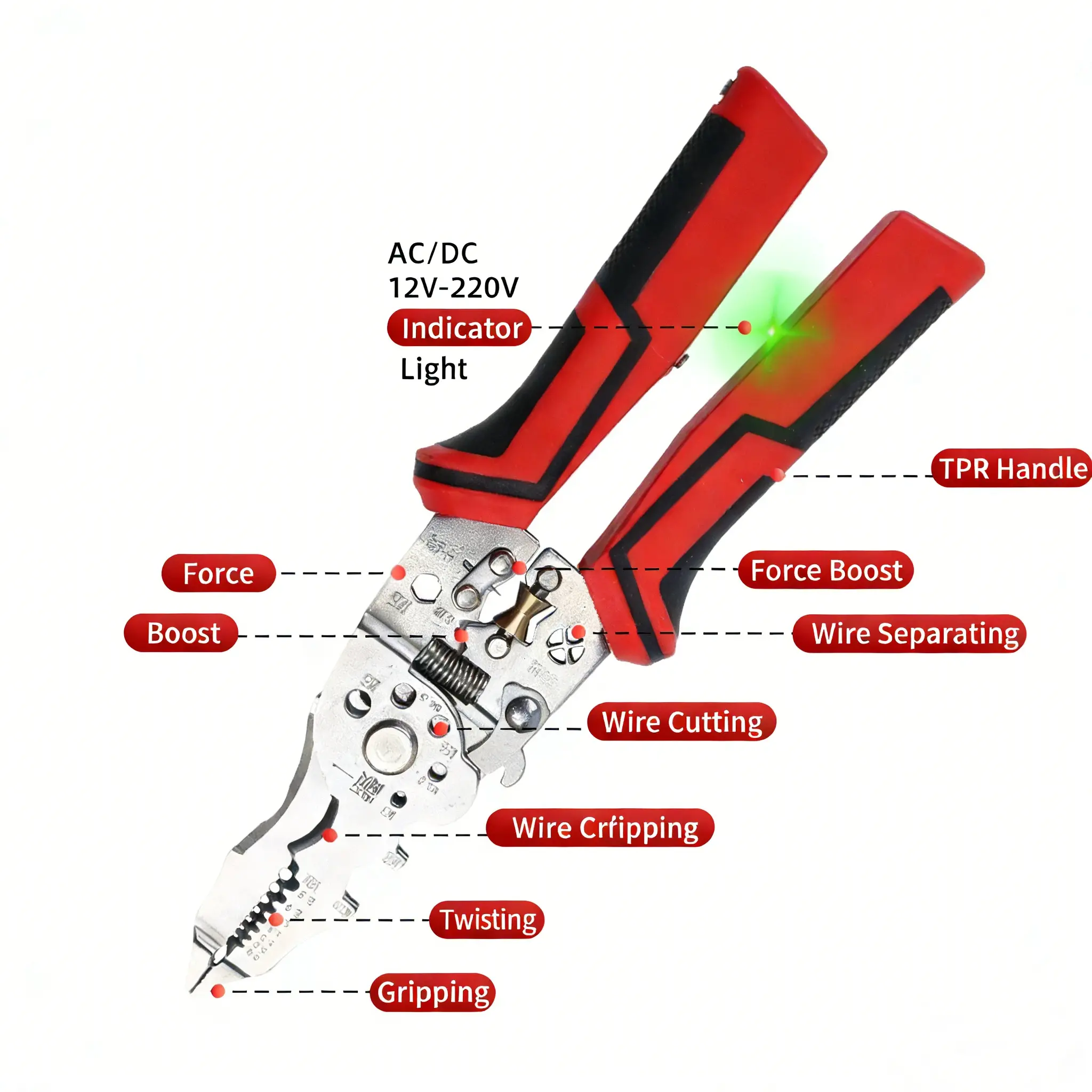 16-in-1 Multi-Function Wire Stripper Pliers with Live Wire Indicator Manual Hand Tool for Cutting Stripping Crimping Twisting & Bending Wires Home Repair Use Compact Portable High-Quality Tools