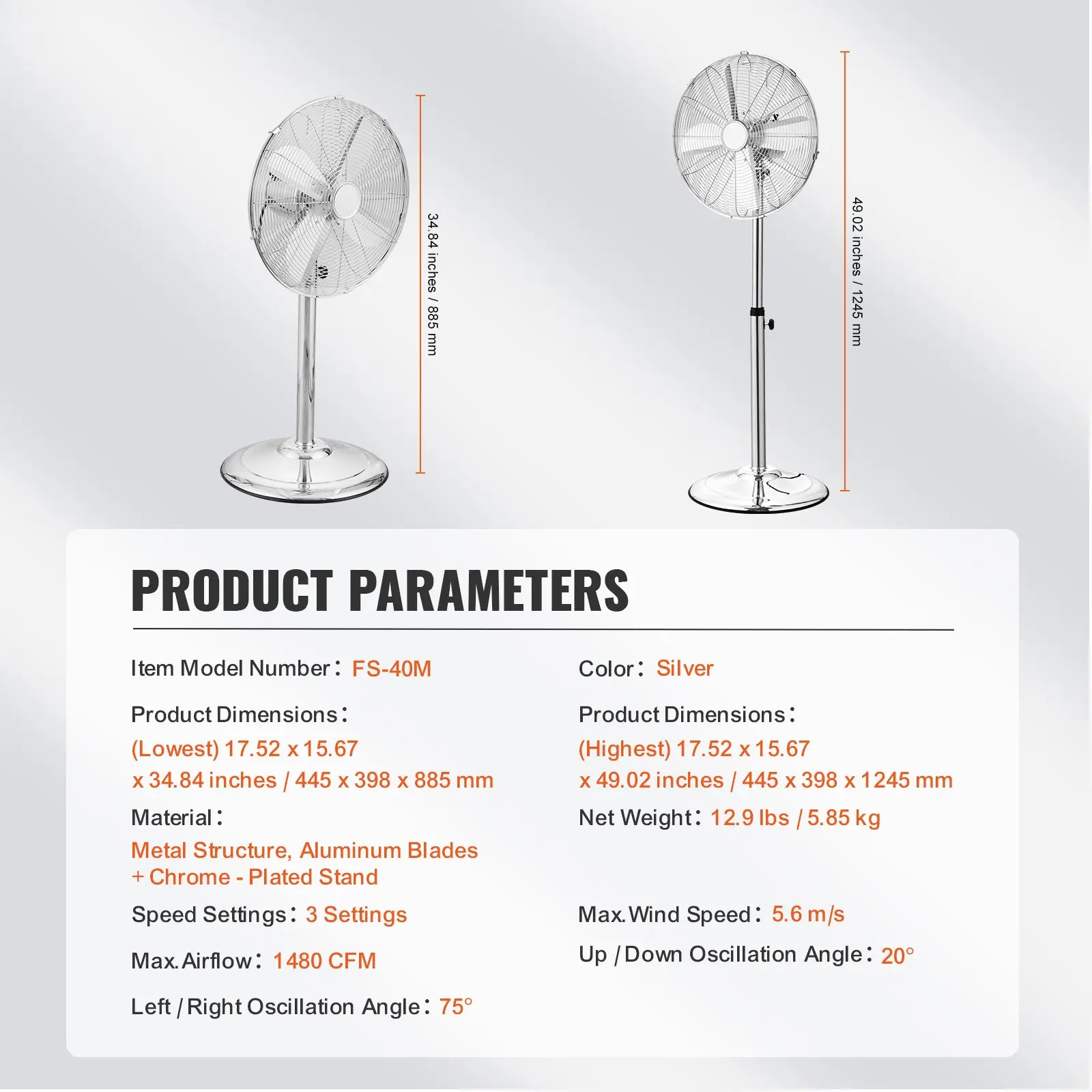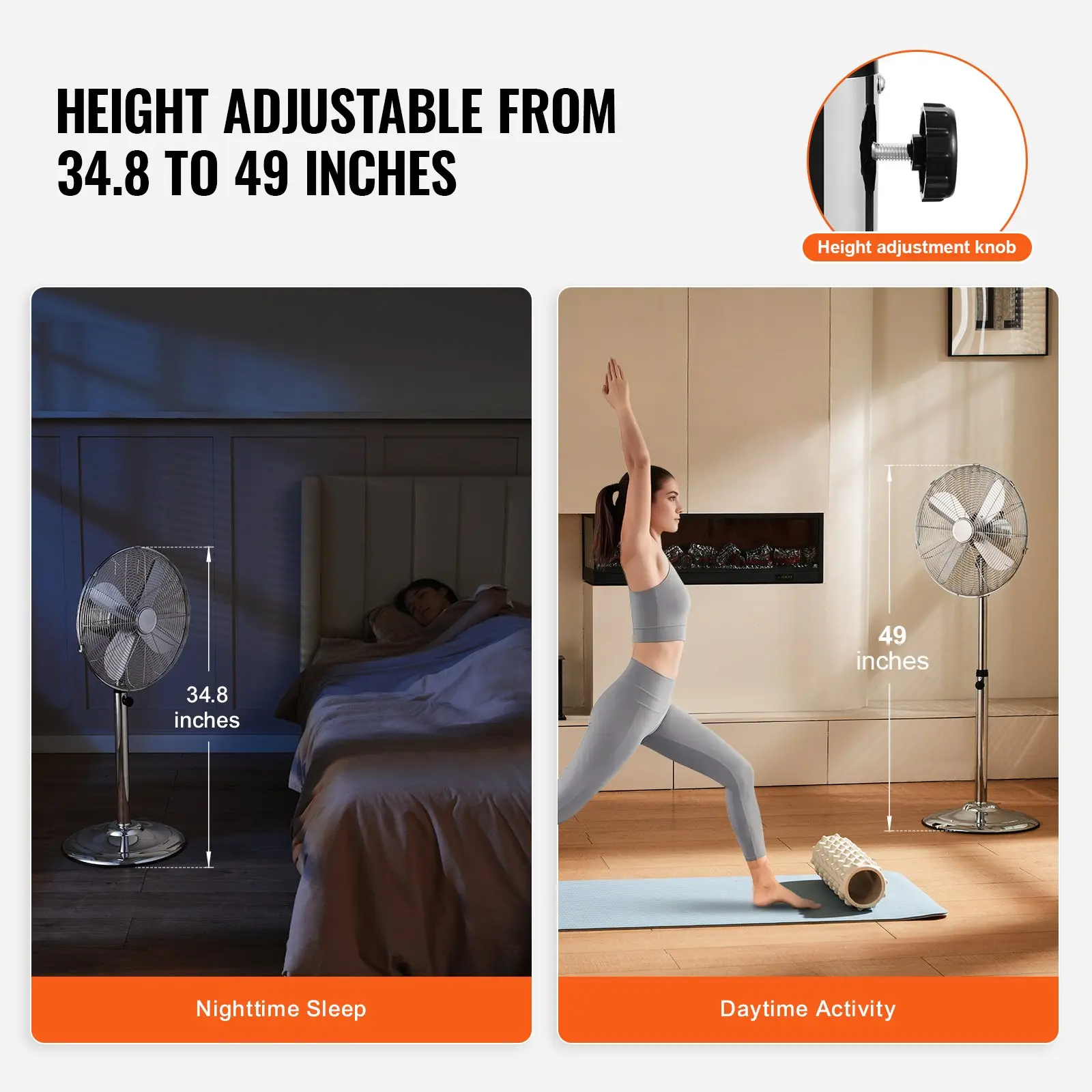 ·Height Adjustment: Our floor fan offers an adjustable height range from 34.8 to 49 inches, allowing you to customize the fan’s height for standing, sitting, or lying down, ensuring the ideal airflow for any scenario