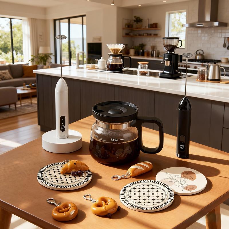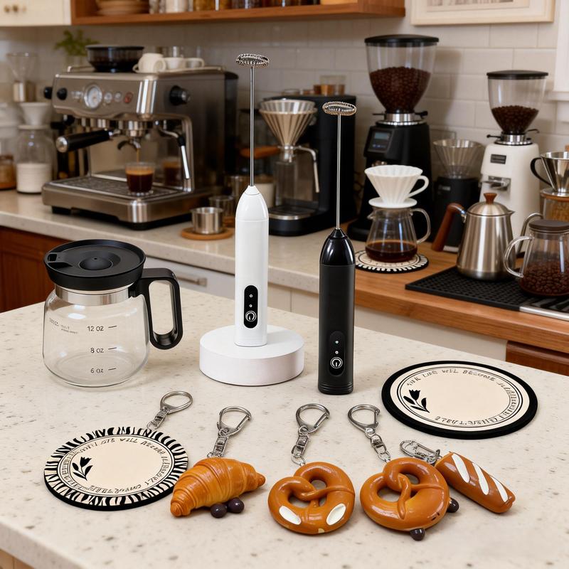 • Electric Milk Frother – Create creamy foam at home in seconds