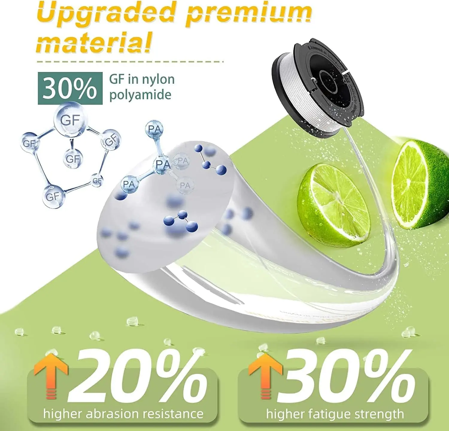 ABRASION RESISTANT: The trimmer line is made of improved nylon polyamide material with a tensile strength of over 100 lb, which is 30% more durable than other brands and lasts longer