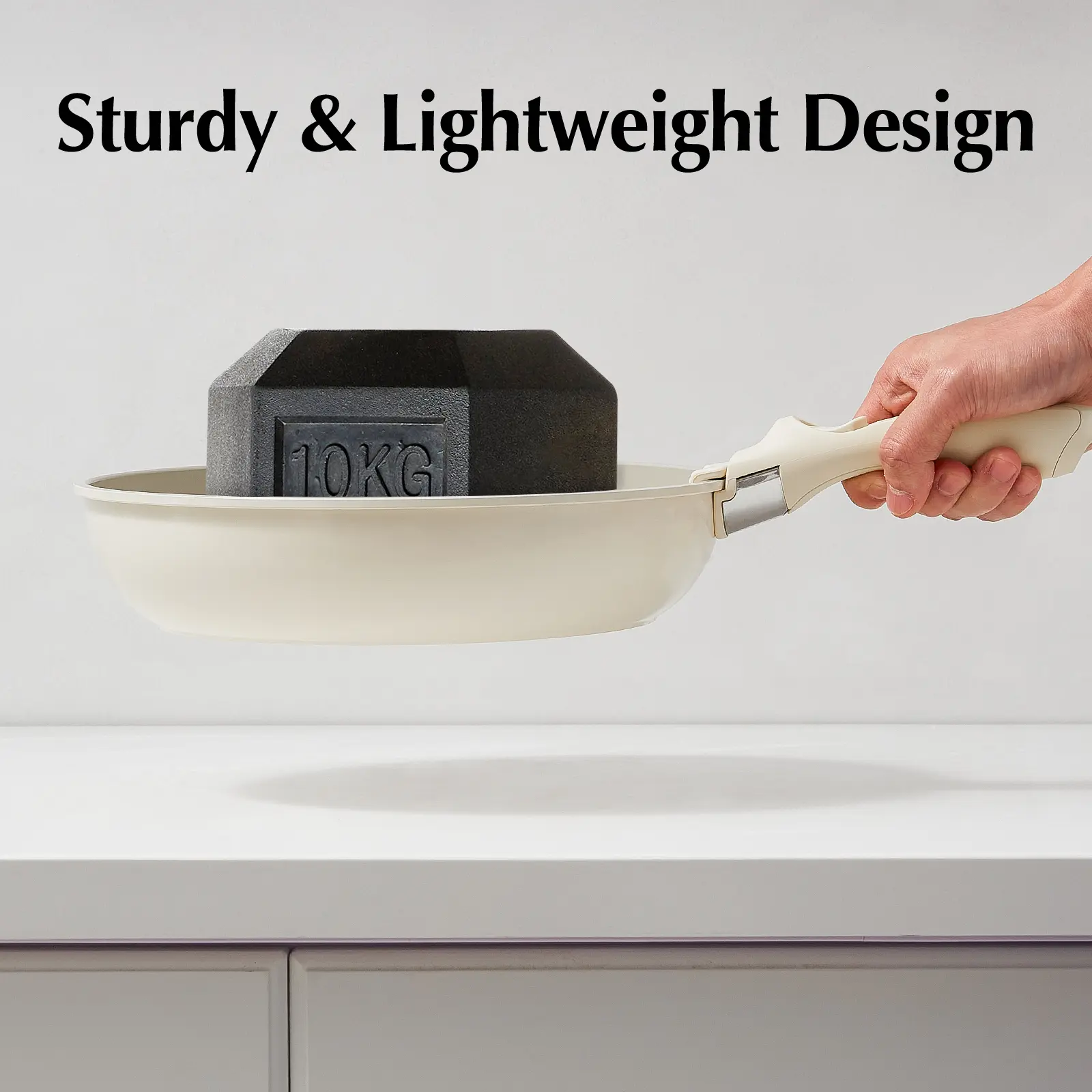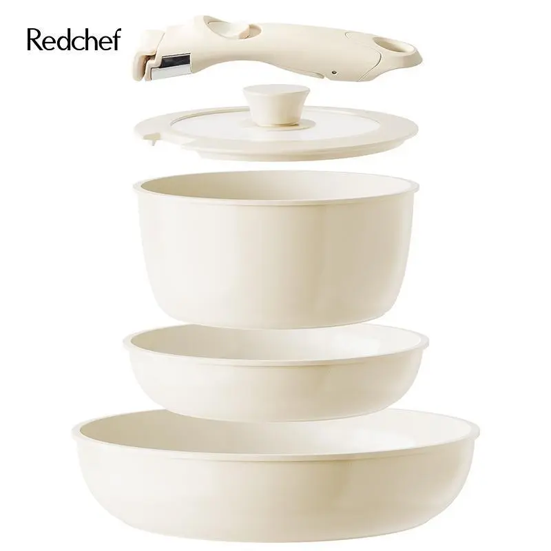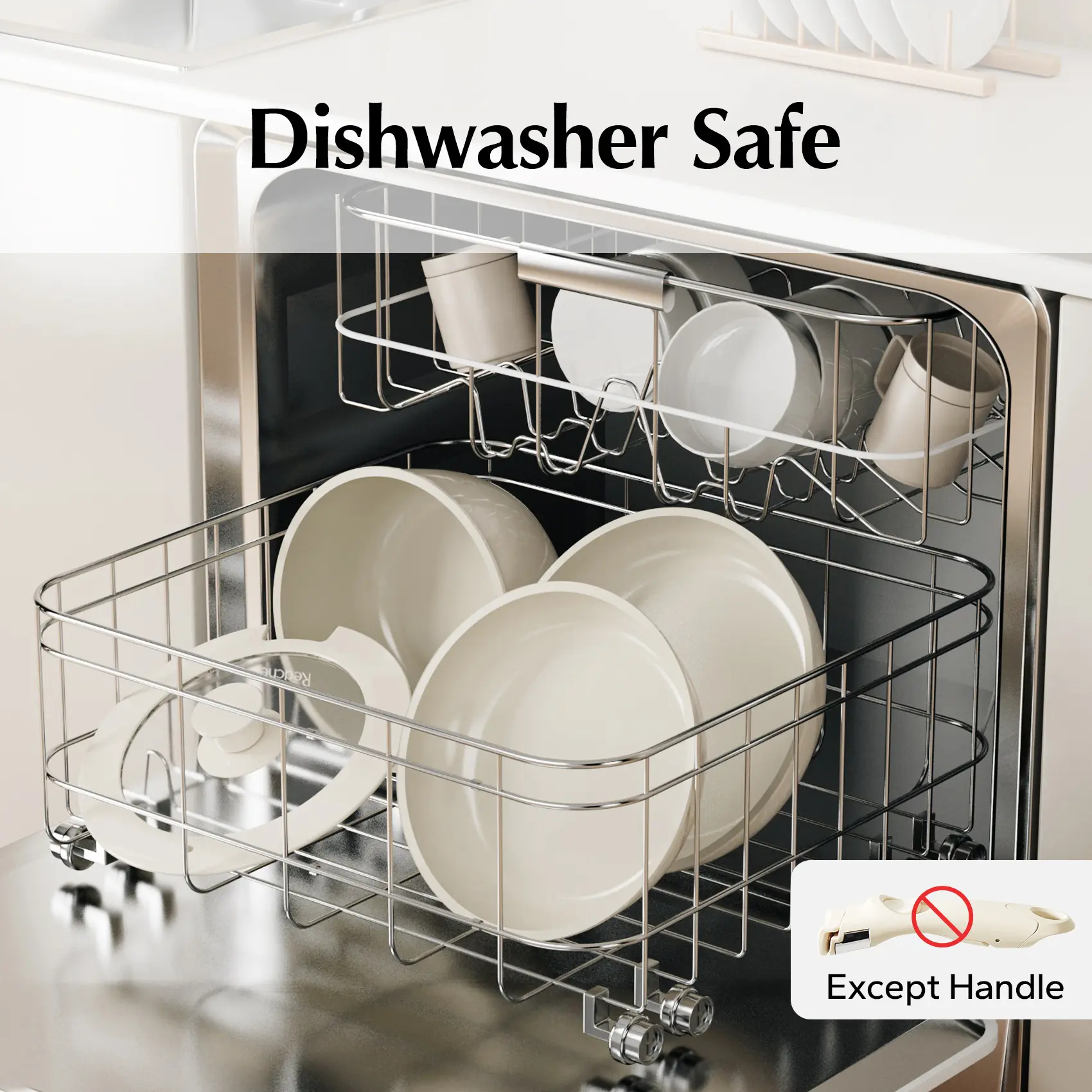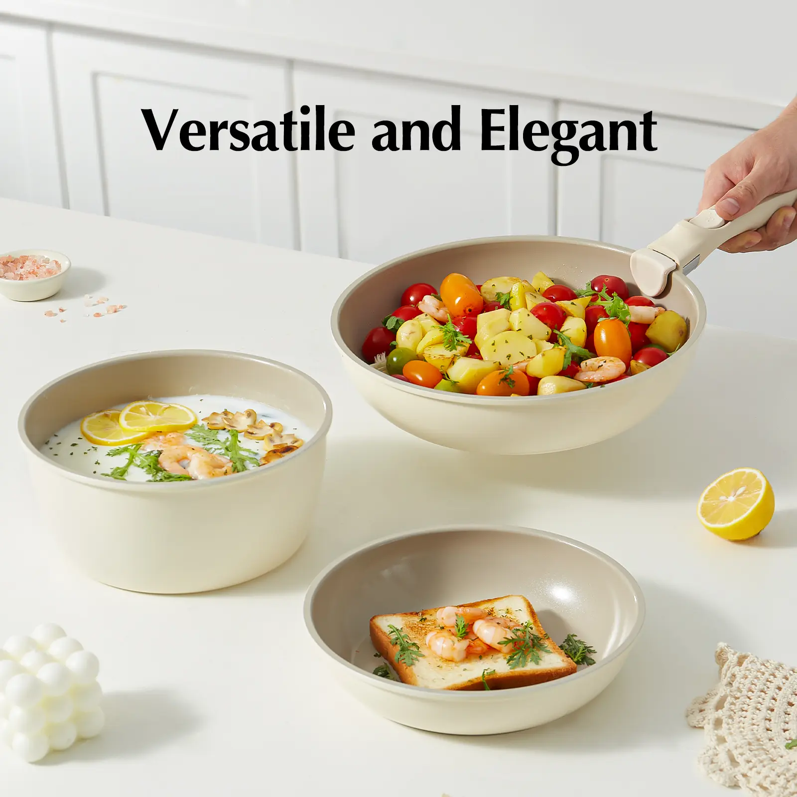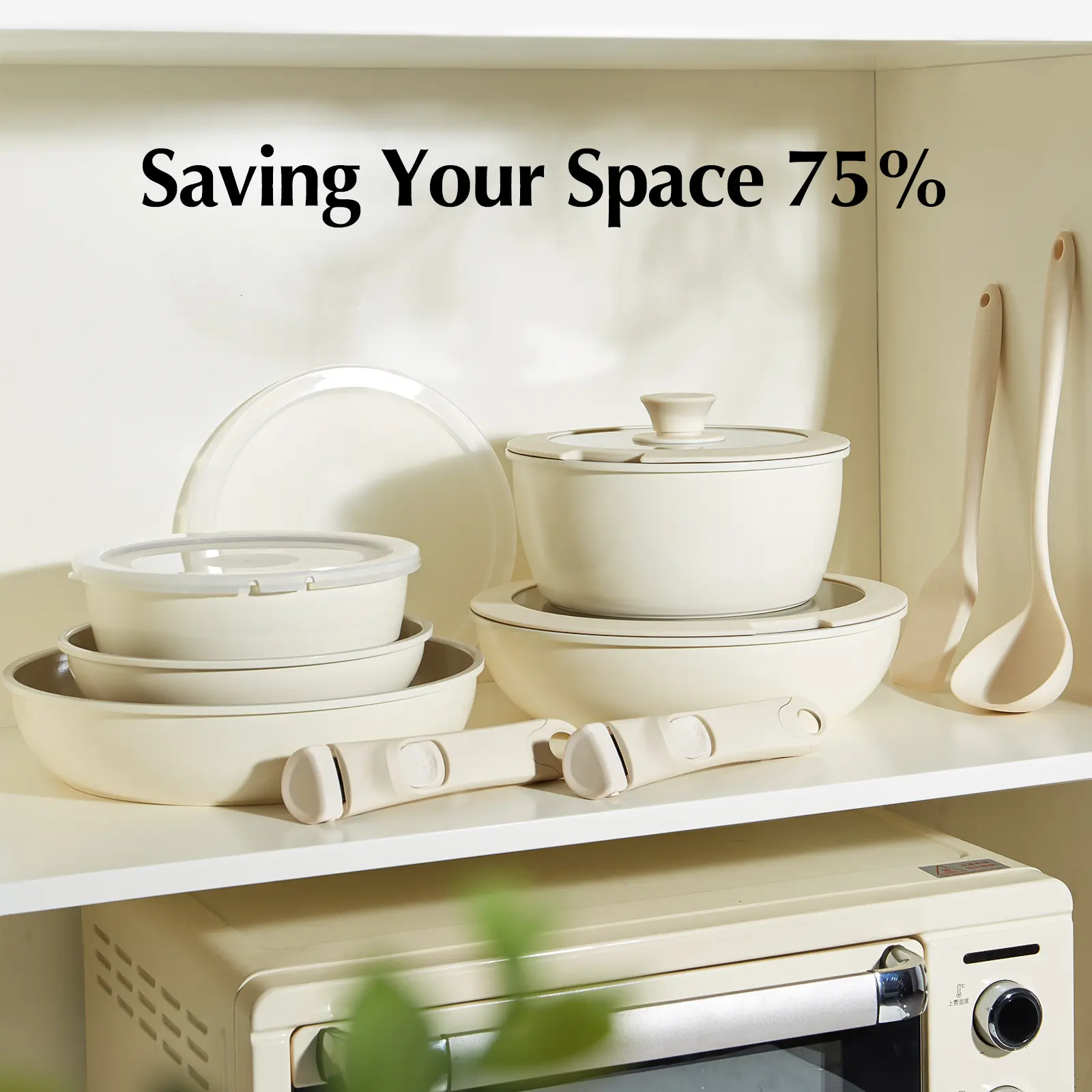 75% Space-Saving: Stackable pots and pans with detachable handles save up to 75% cabinet space—perfect for compact kitchens, RVs, and campers.