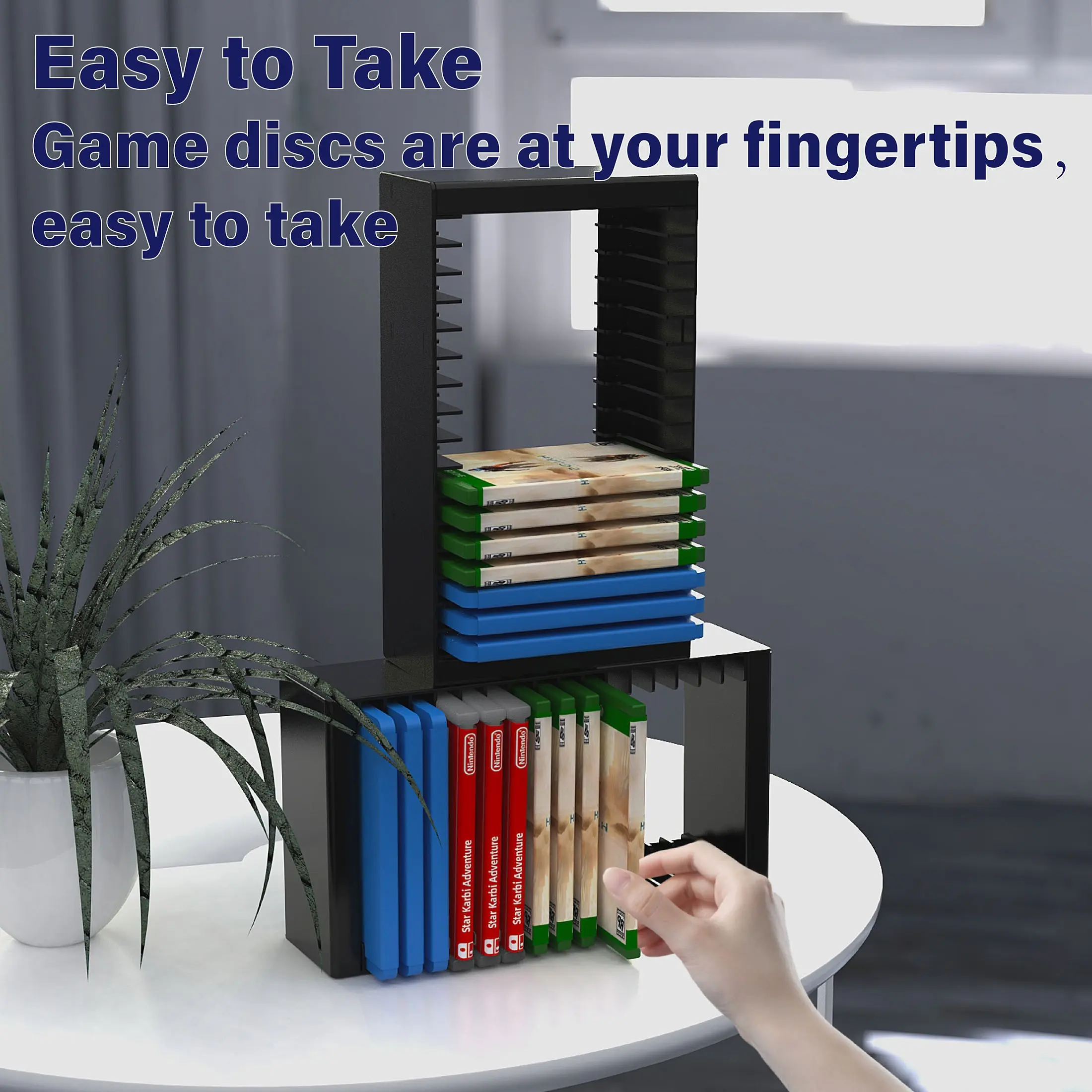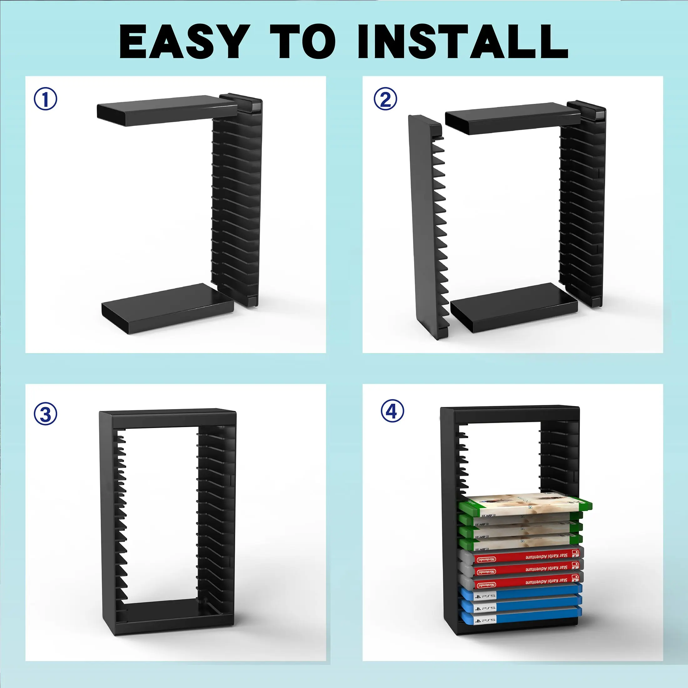16 Slot Video Game Disc Storage Tower, Vertical Game Case Organizer Rack, ABS Stackable Stand, Space Saving Game Shelf, Display Holder, Compatible with PS5 PS4 Xbox Series X/S Xbox One and Switch, for Gaming Room Setup Display and Desk Organiz
