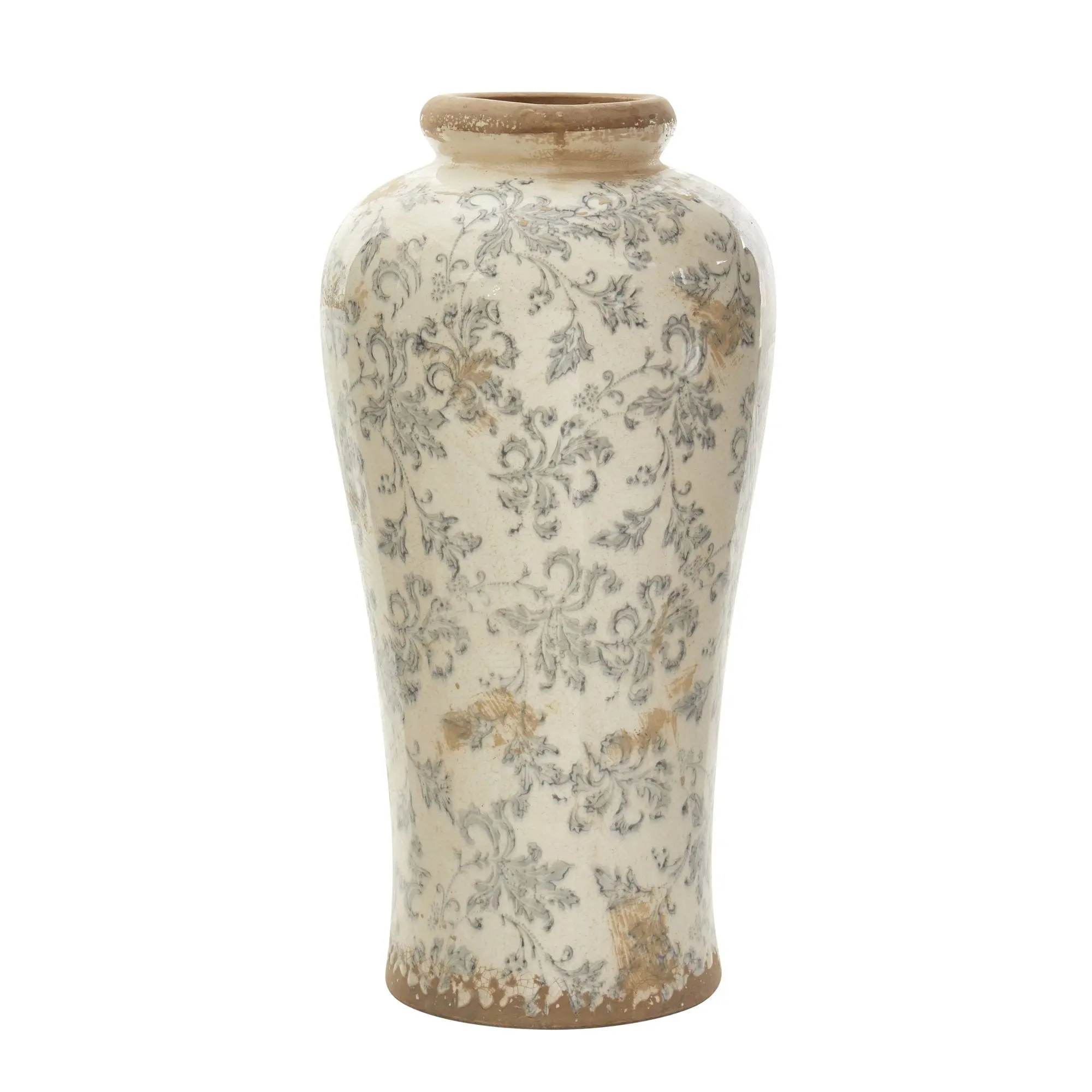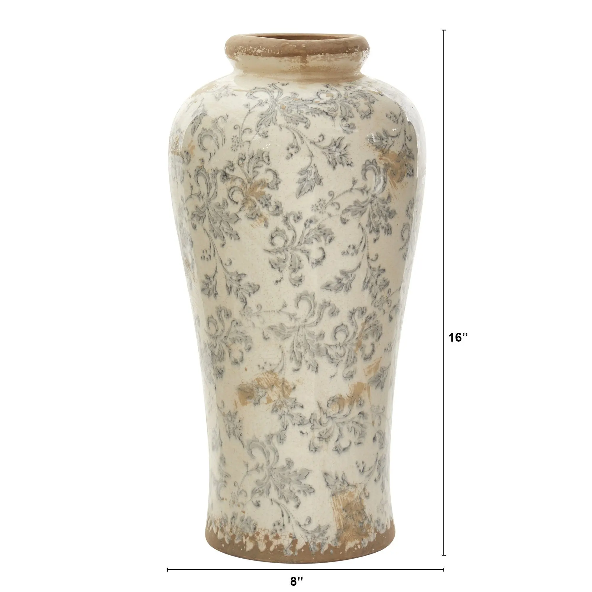 16” Tuscan Ceramic Floral Scroll Urn Vase