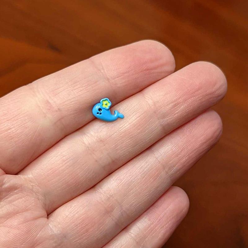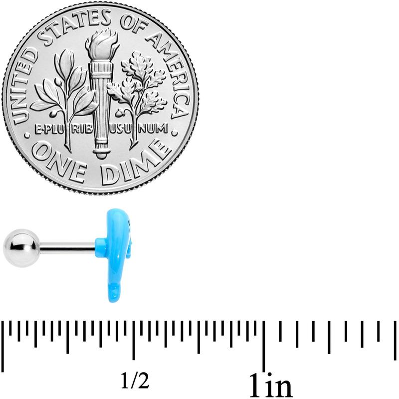 The whale on this 16 gauge cartilage stud is feeling pretty and wants to pretty up your cartilage piercings! It's made with a 6mm durable 316L surgical grade stainless steel straight barbell with a 4mm ball end. It features a bright blue whale charm with a black eye and eyelash detail. It's further embellished with a green flower and you can rock it in multiple piercings including tragus, helix, and some conch piercings. This wild whale is sure to give your cartilage piercings a wicked, watery new look!Specifications16 Gauge (1.2mm), 1/4" (6mm), 316L Surgical Grade Stainless Steel Straight Barbell, 4mm Ball End