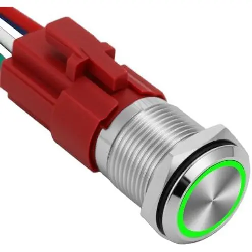 Hole size:0.63''/16mm.Latching self locking mode.LED 12V DC.Black shell with Ring LED