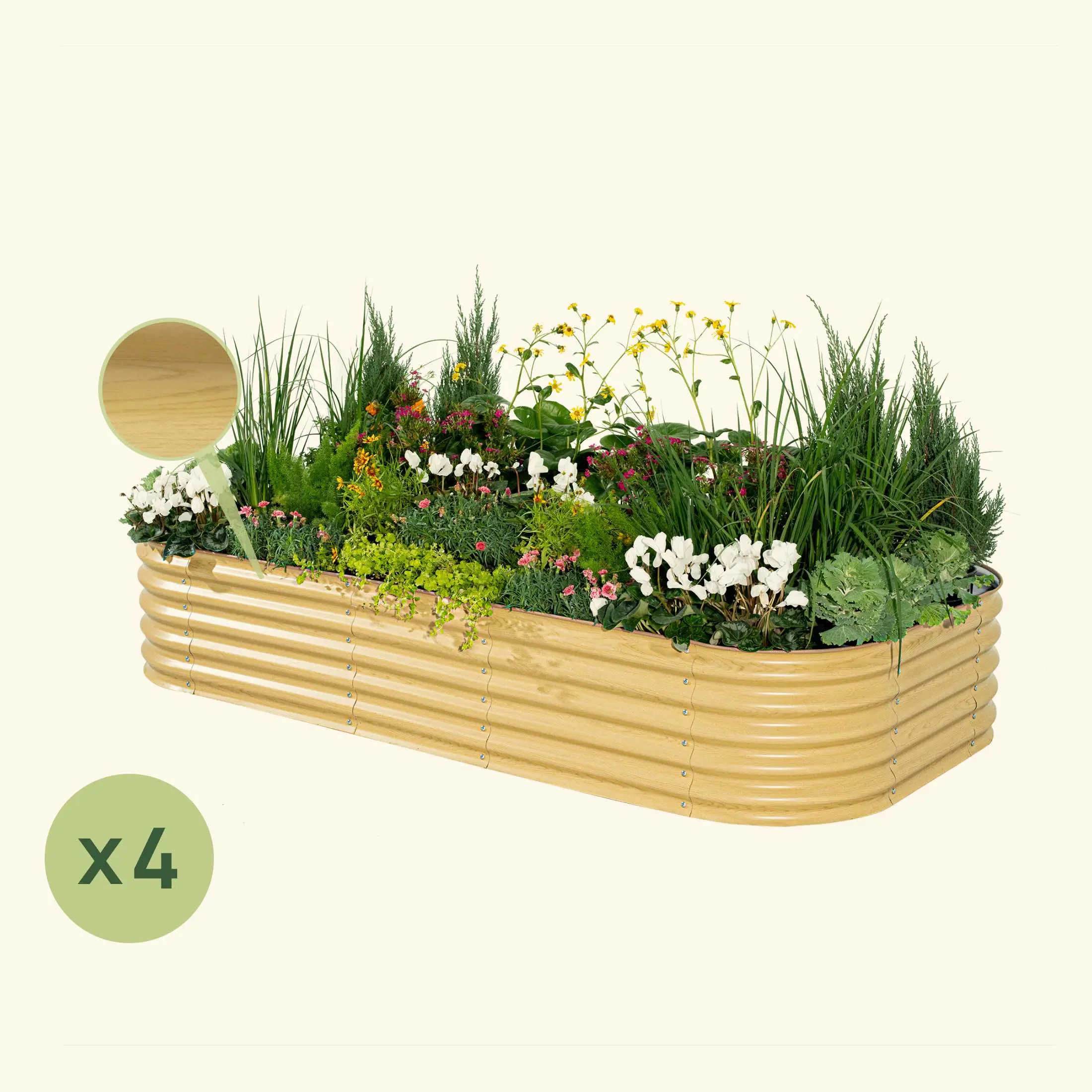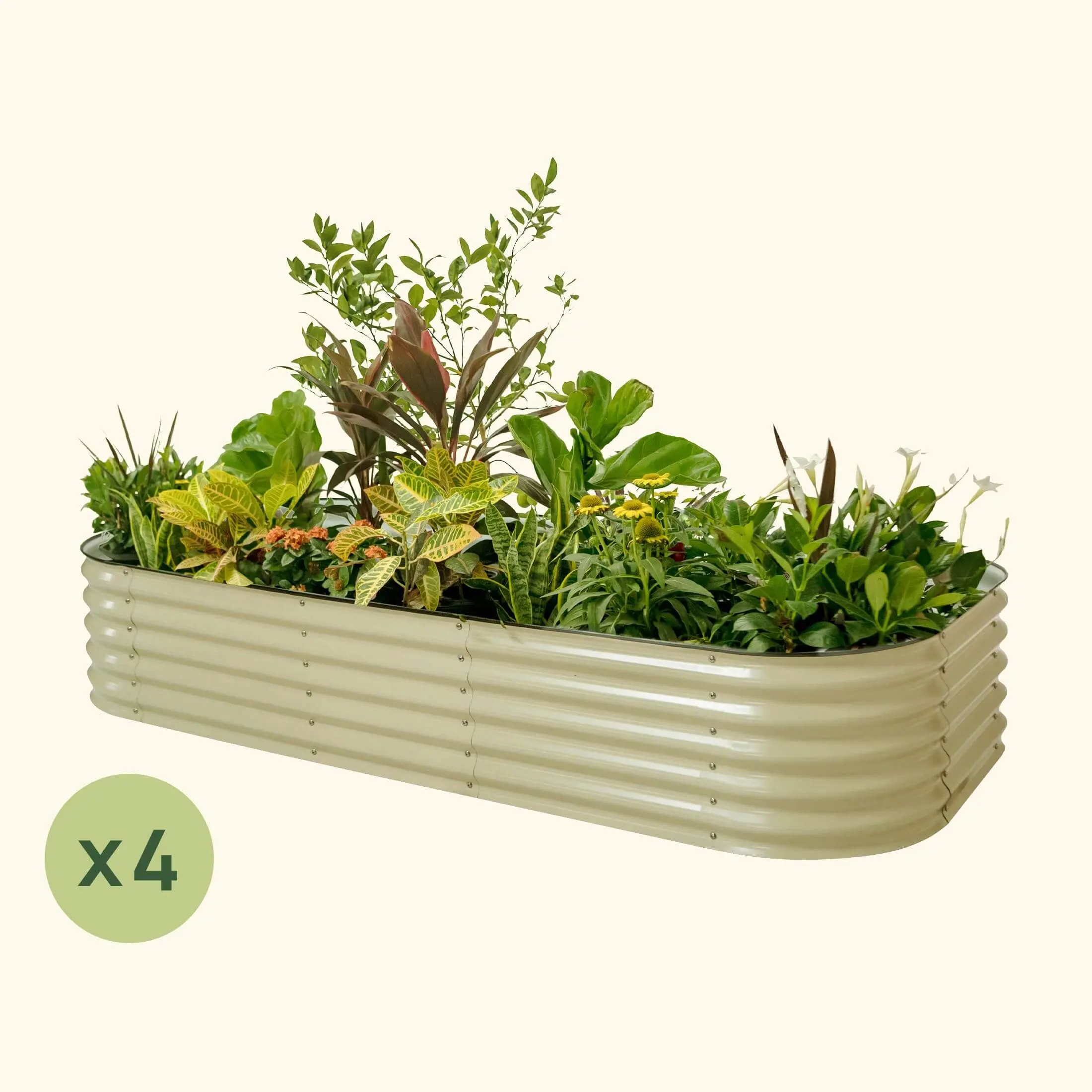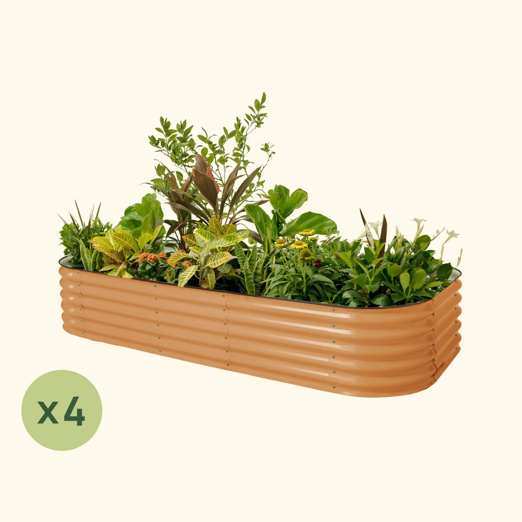 Create your ideal garden with ease using our 4-pack of 17" tall, modular metal raised garden bed kits. Enjoy versatile gardening options and customizable layouts for your plants. Simplify your gardening experience and elevate your green thumb abilities with this kit.