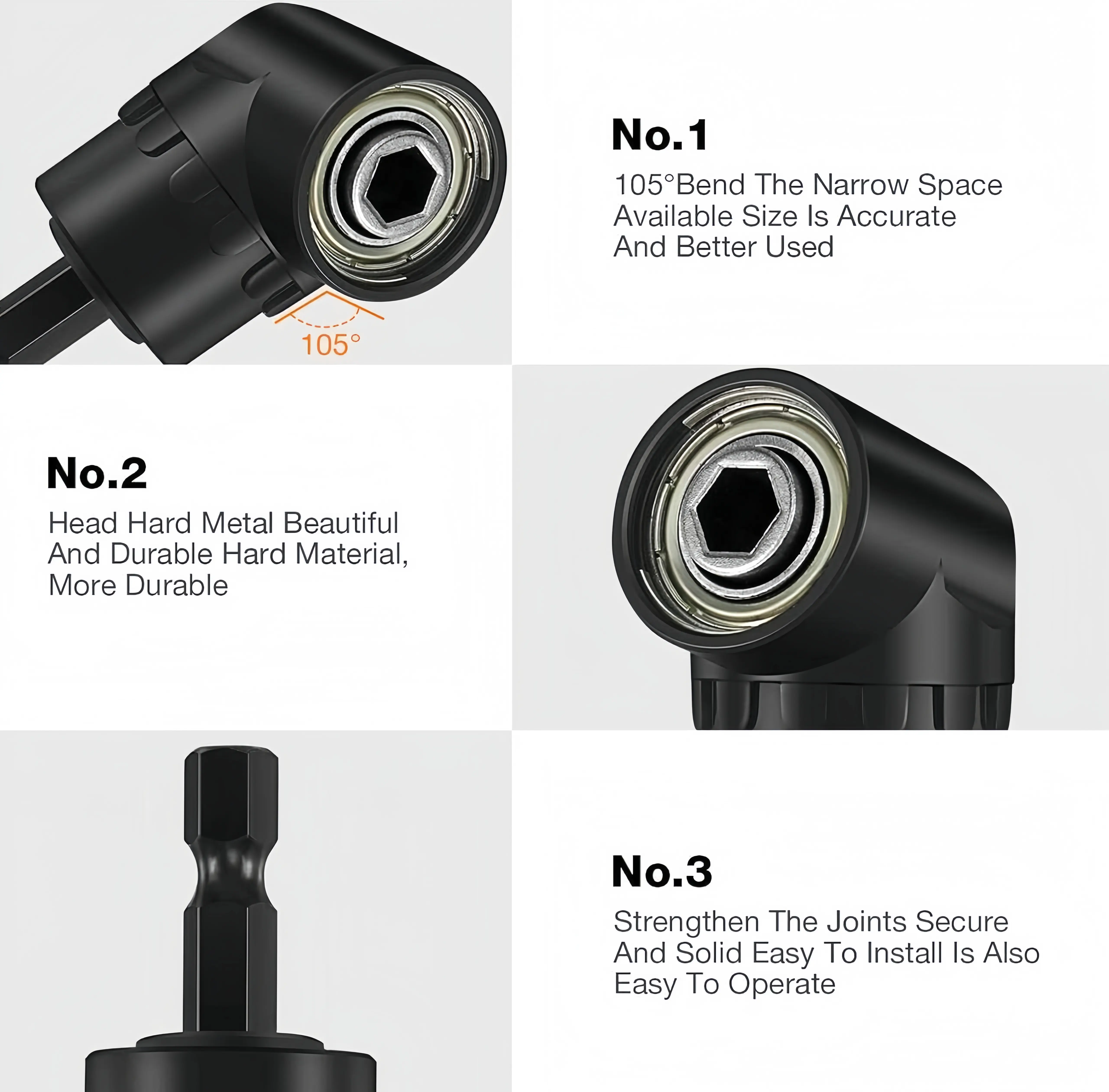 Upgrade your drilling toolkit with this 17Pcs Flexible Drill Bit Extension set. It includes 3Pcs Rotatable Socket Adapter and 2Pcs Hex Shank for versatile use. The 105° Right Angle Drill Attachment ensures precise angles. 📐