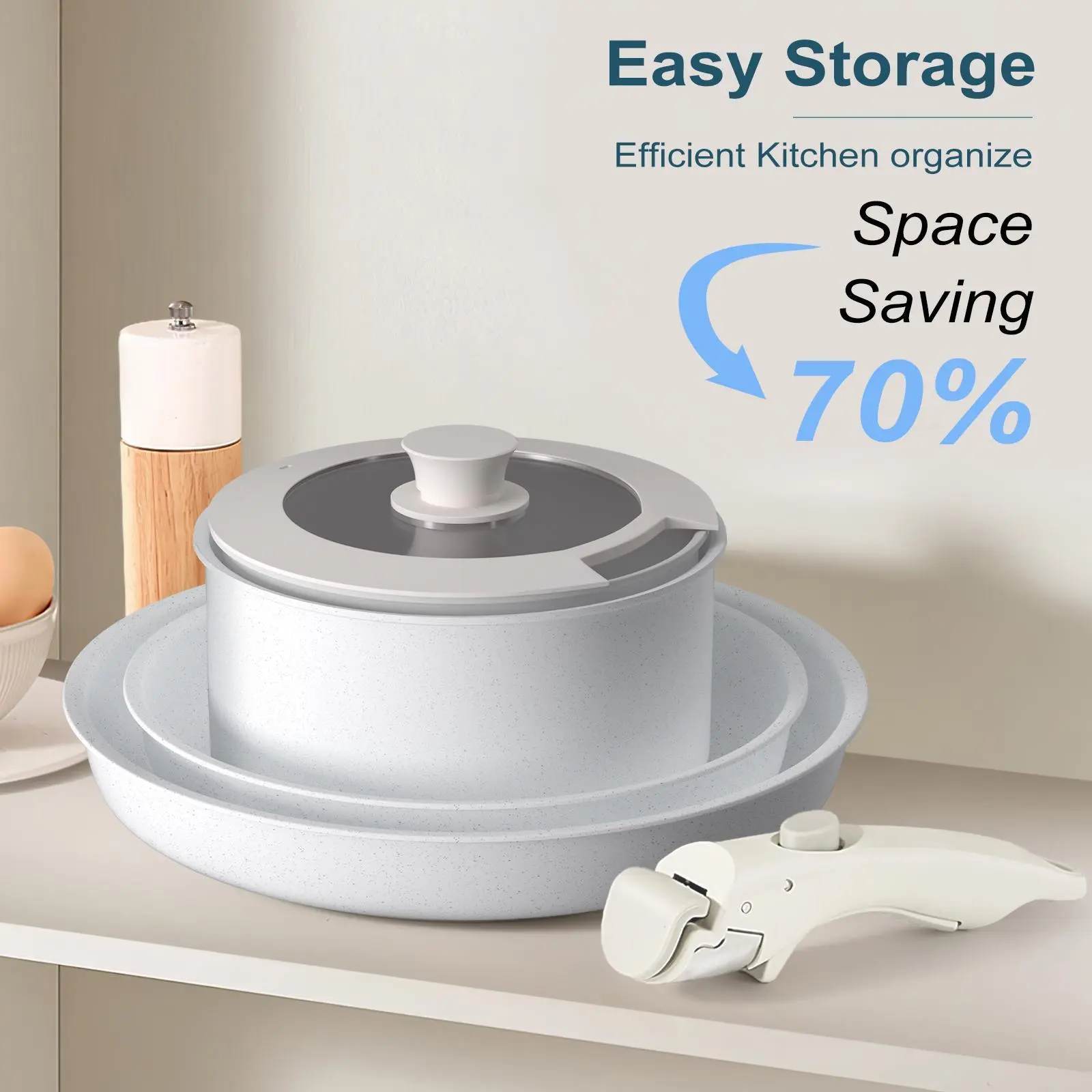 Easy Storage: Stack pots and pans neatly in a cabinet or drawer, saving 70% of kitchen space; this ceramic cookware set is easy to store and carry, suitable for compact spaces and on the go. Perfect for compact spaces, RVs, and campers.