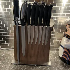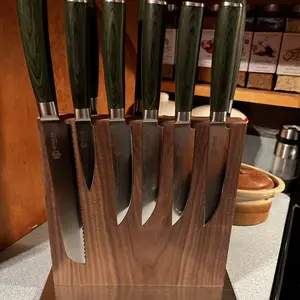 This was a gift to my son for his collection of knives that I purchased over time for him. I believe he has the whole set now and was just missing a neat place to keep them. The block is beautiful and very well made for sure. Think I might need to purchase another to finish a resting place for all the other pieces.