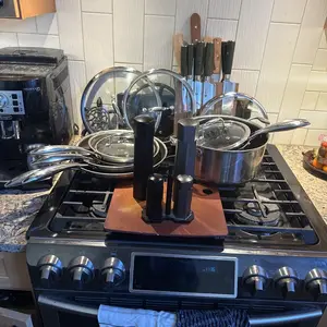 If have the basic 12 piece set, knives, the knife block and my fabulous mills. I am 100% satisfied with all my HexClad utensils!! In fact, I never knew what cracked pepper really smelled like until I got my mills. THANK YOU!!