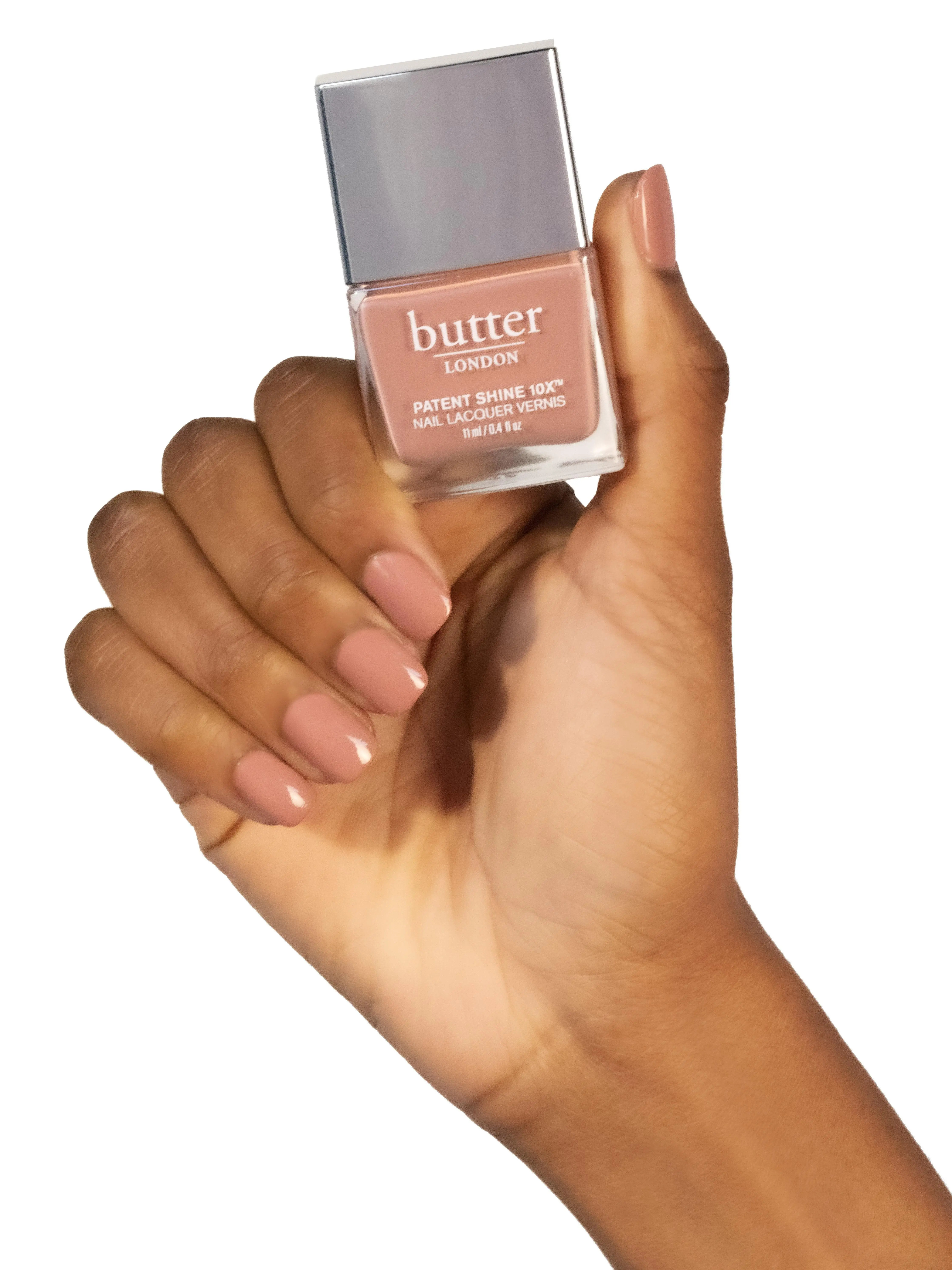 A rosy nude crème nail lacquer that channels effortless British elegance, this mini lacquer delivers a polished, posh finish for every occasion—from afternoon tea to weekend wear. Formulated with our signature Patent Shine 10X technology, it promotes brighter, stronger, healthier-looking nails with salon-quality results.