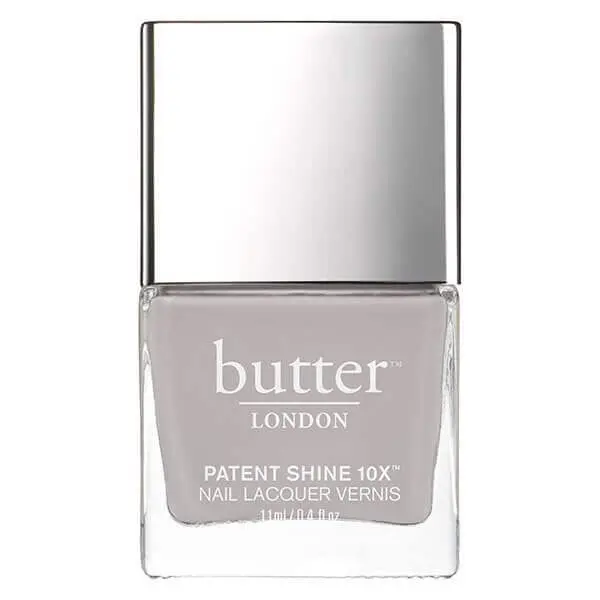Wave Ta-ta! in this gorgeous light grey nail lacquer you’ll wear again and again. From glamorous looks to weekend brunch, this butter LONDON Patent Shine 10X Nail Lacquer adds a posh and polished nail look to every occasion—no matter how sophisticated or casual. Featuring our Patent Shine 10X good-for-nail formula, this brilliant butter LONDON nail lacquer is proven to help promote brighter, stronger, and healthier-looking nails. The patented Shock Resistance Polymer Technology delivers a gel-like finish with undeniable shine, while the Radiant Curing help harden and dry polish with the ease of natural light. Achieve full-coverage colour in one simple swipe with the butter LONDON unique brush applicator—a dense, curved applicator that hugs nails for flawless-looking colour with up to 10 days of wear!