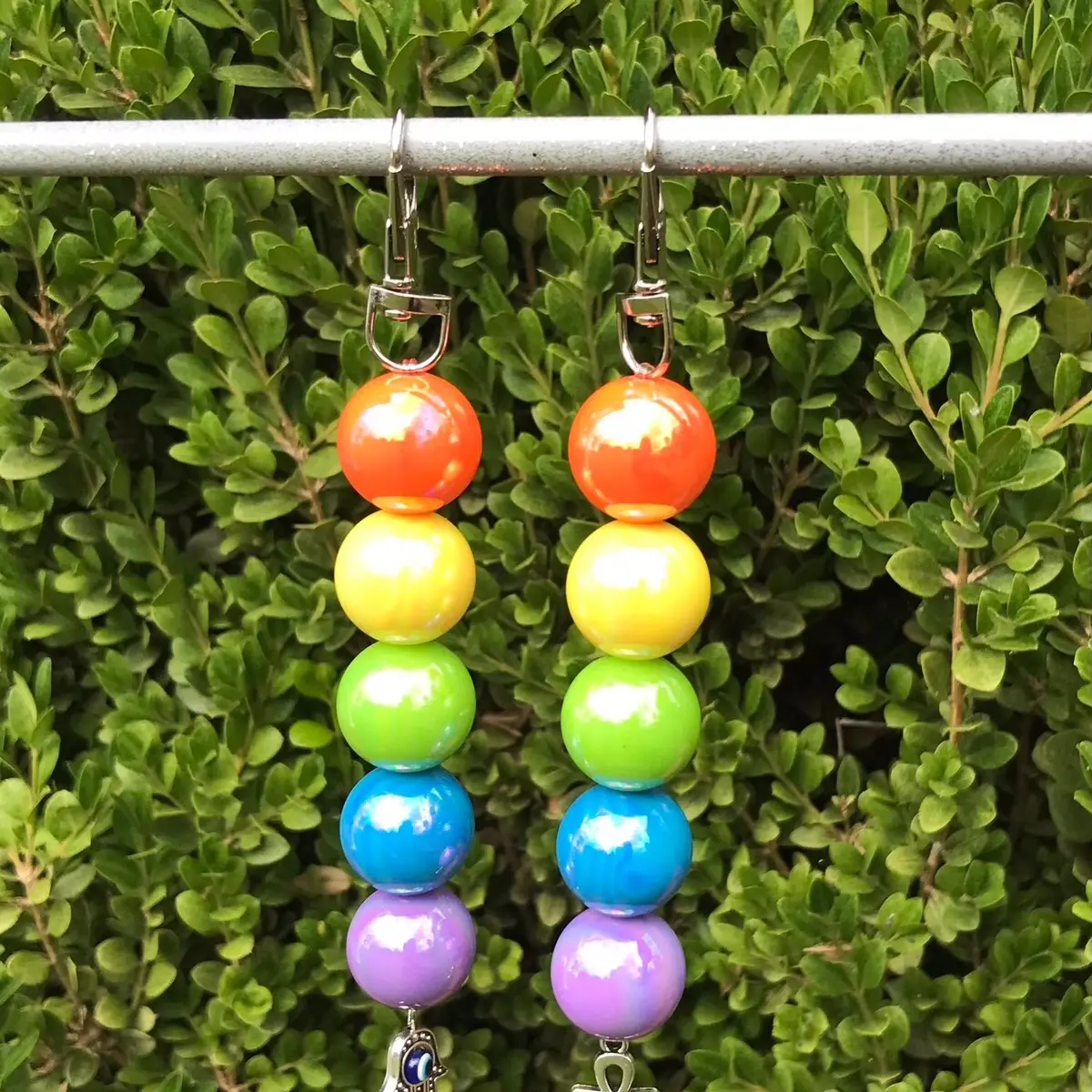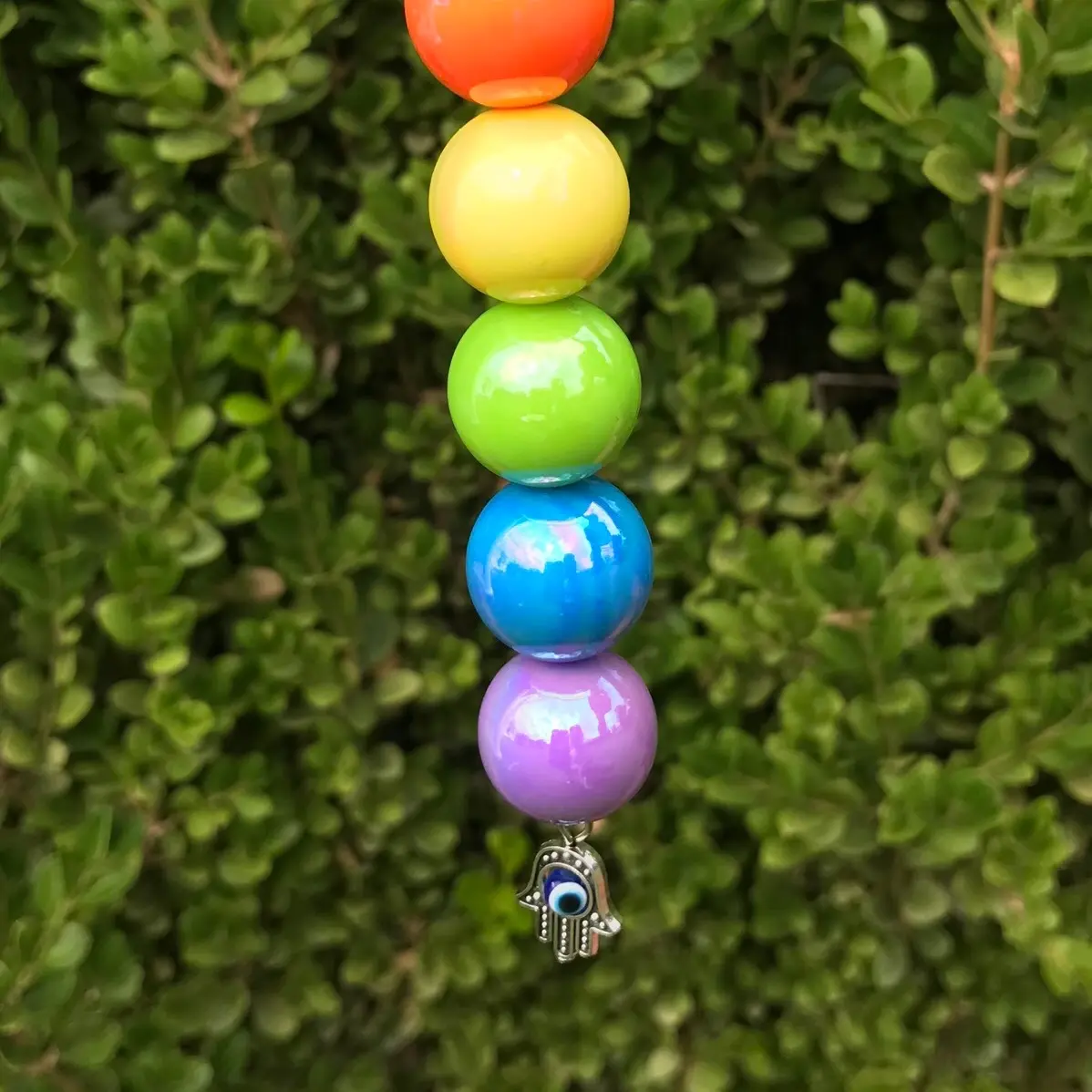 Rainbow Bubblegum Beads W/Ankh Cross Keychain Rainbow Bubblegum Beads w/Hamsa Hand Evil Eye Keychain
