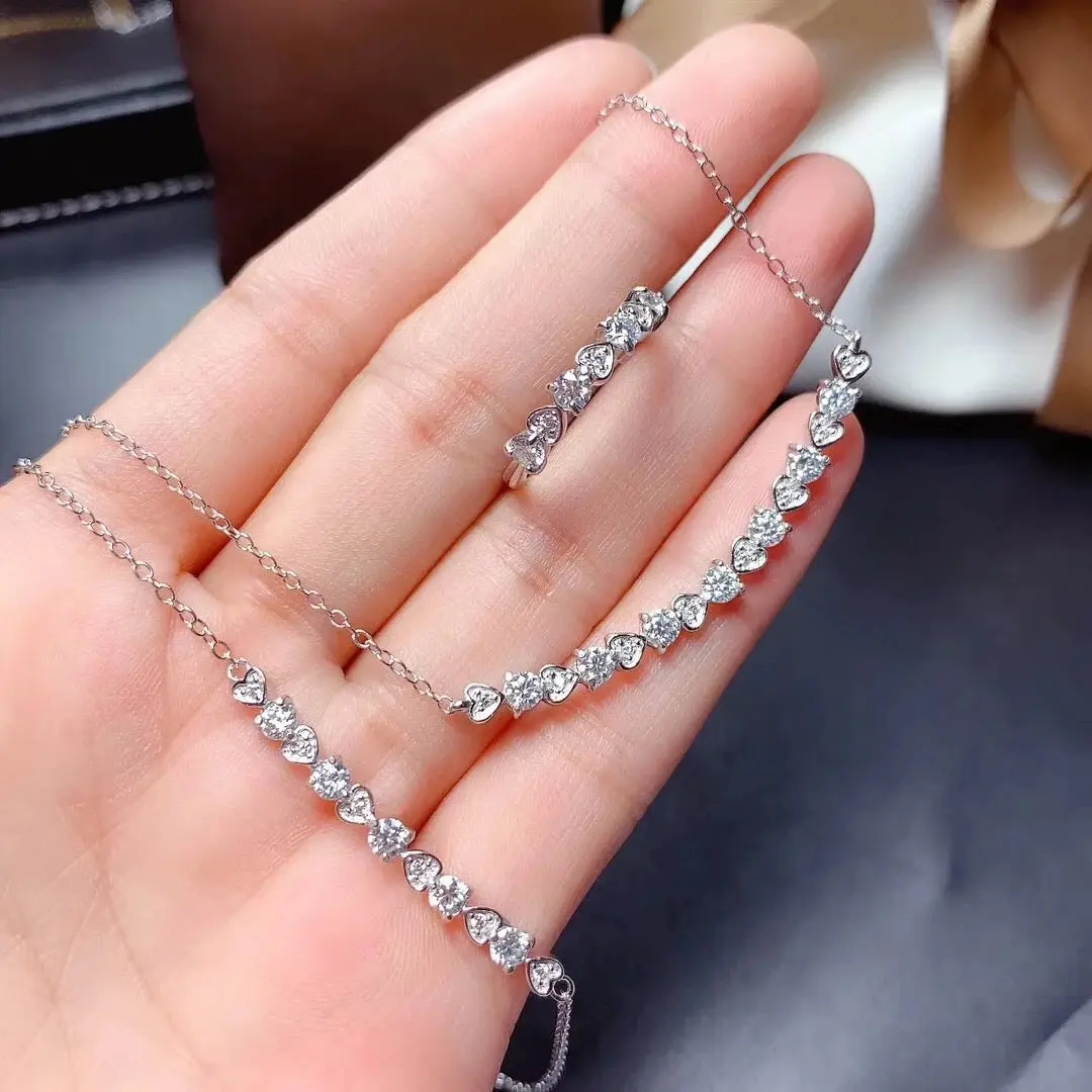 Astound her with this moissanite heart diamond curved bar pendant necklace and tennis bracelet with matching ring set. Mesmerizing conflict free diamonds sparkles with a gentle curve. Best Wedding, Bridal, Valentines or Mother’s Day gift!