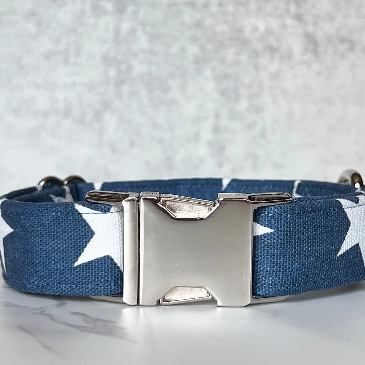 This beautiful blue dog collar is the pop of color that your pup needs. The white polka dots give extra dimension to really stand out.