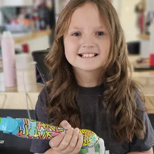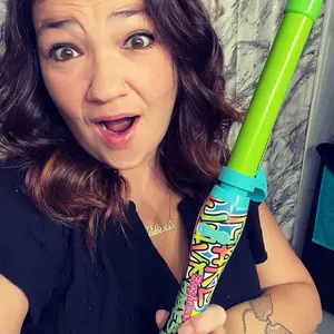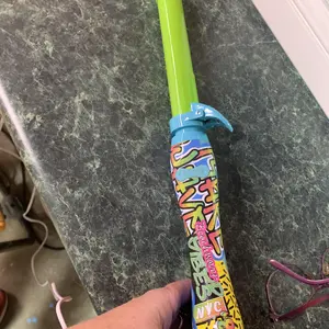 In love with this curling iron. Was constantly burning bc finger tips trying to use wands or straightener to curl. This is so easy to use and curls hair quickly. Also the graphics on this is just so colorful and looks awesome!