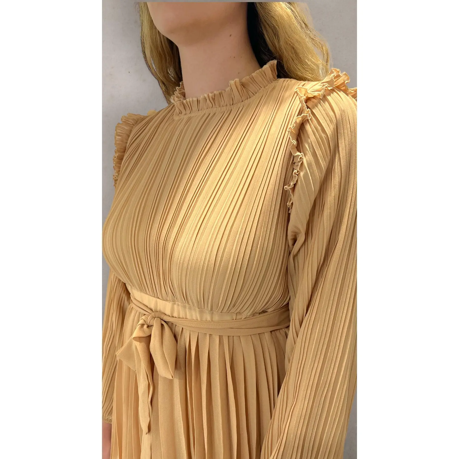 Features and Design: Elevate your ensemble with the enchanting ruffle collar and ruffle shoulders, adding a touch of whimsy and femininity to your look. The three-tier layered design exudes grace and movement, while the chiffon pleated fabric enhances the texture and visual appeal. The elastic waistband ensures a comfortable fit that accentuates your silhouette flawlessly.
