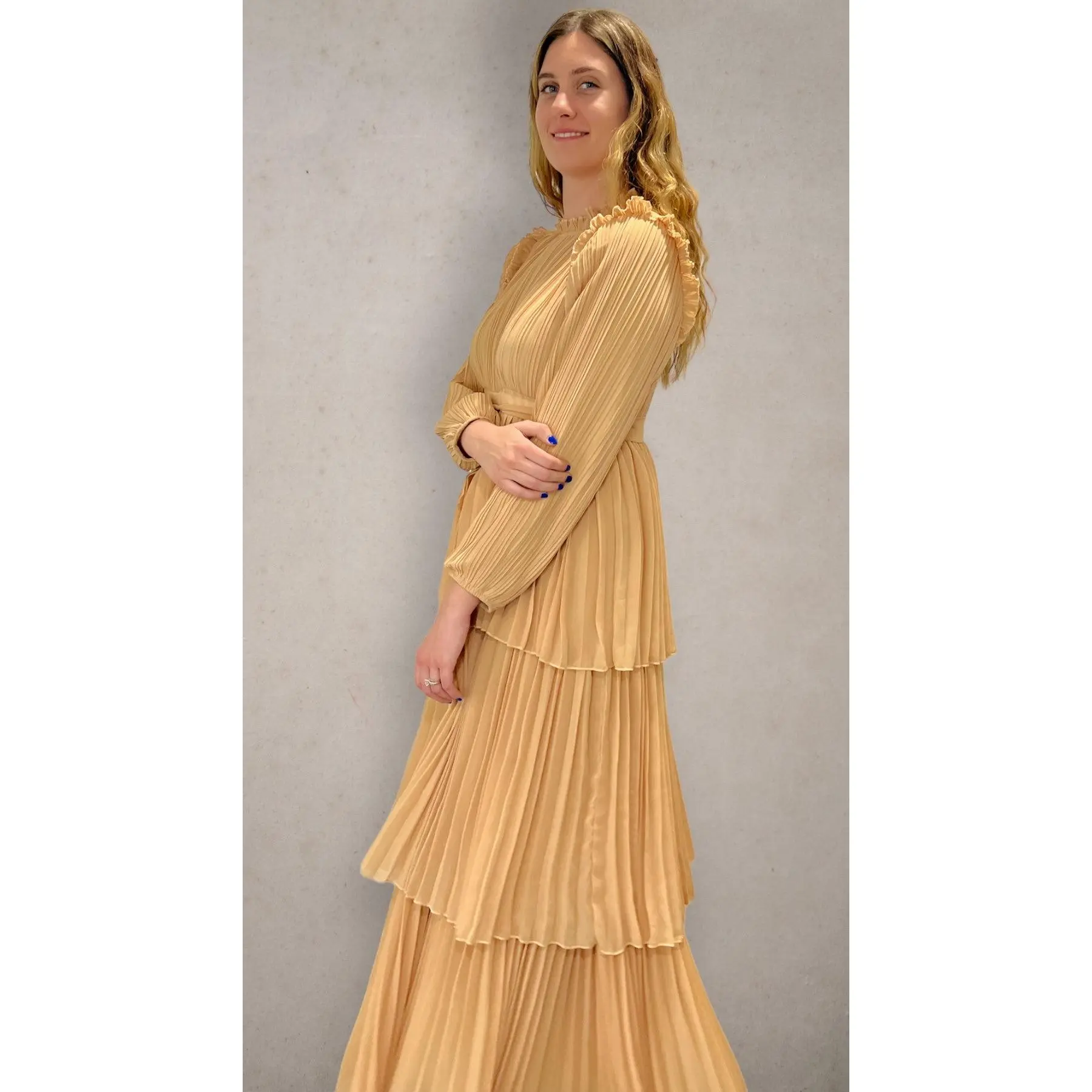 Dare to stand out in our three-tier layered dress, available in a stunning array of colors. Experience the joy of chiffon pleats, ruffle accents, and an elastic waistband that combine to create a look that's both enchanting and timeless for every occasion.