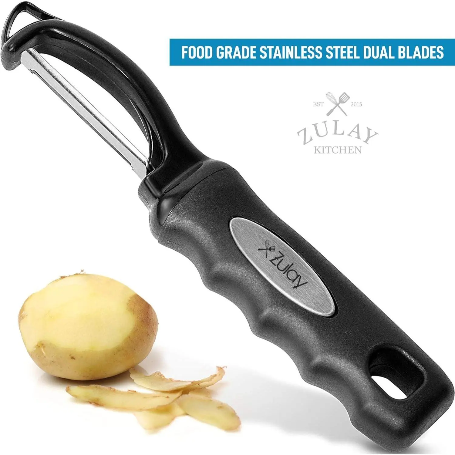 ·Less Waste & Effortless Peeling: The ultra-sharp dual blades glide smoothly, ensuring that you peel away only the skin while leaving minimal waste behind. The built-in potato eye remover helps you effortlessly eliminate blemishes and tiny holes.