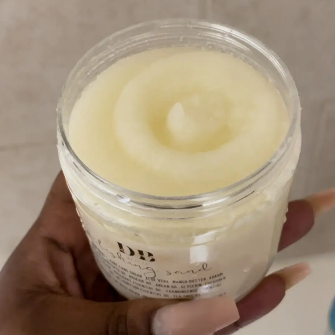 sugar scrub, handcrafted with love that is both moisturizing and rejuvenating. gently sloughs off dead skin while healing the skin.