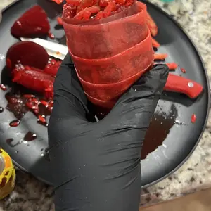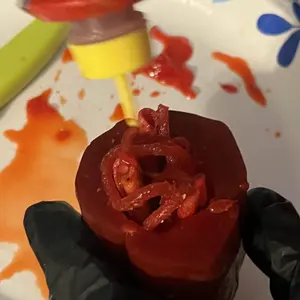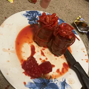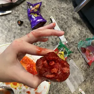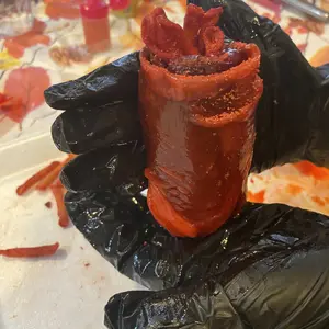 I like the pickle with the fruit roll up with the candy strings but it was just too sour and spicy for me too many clashes of flavors for me. But it was okay I just wouldn't buy it again maybe because I really don't like spicy stuff especially with sour foods it's a no for me