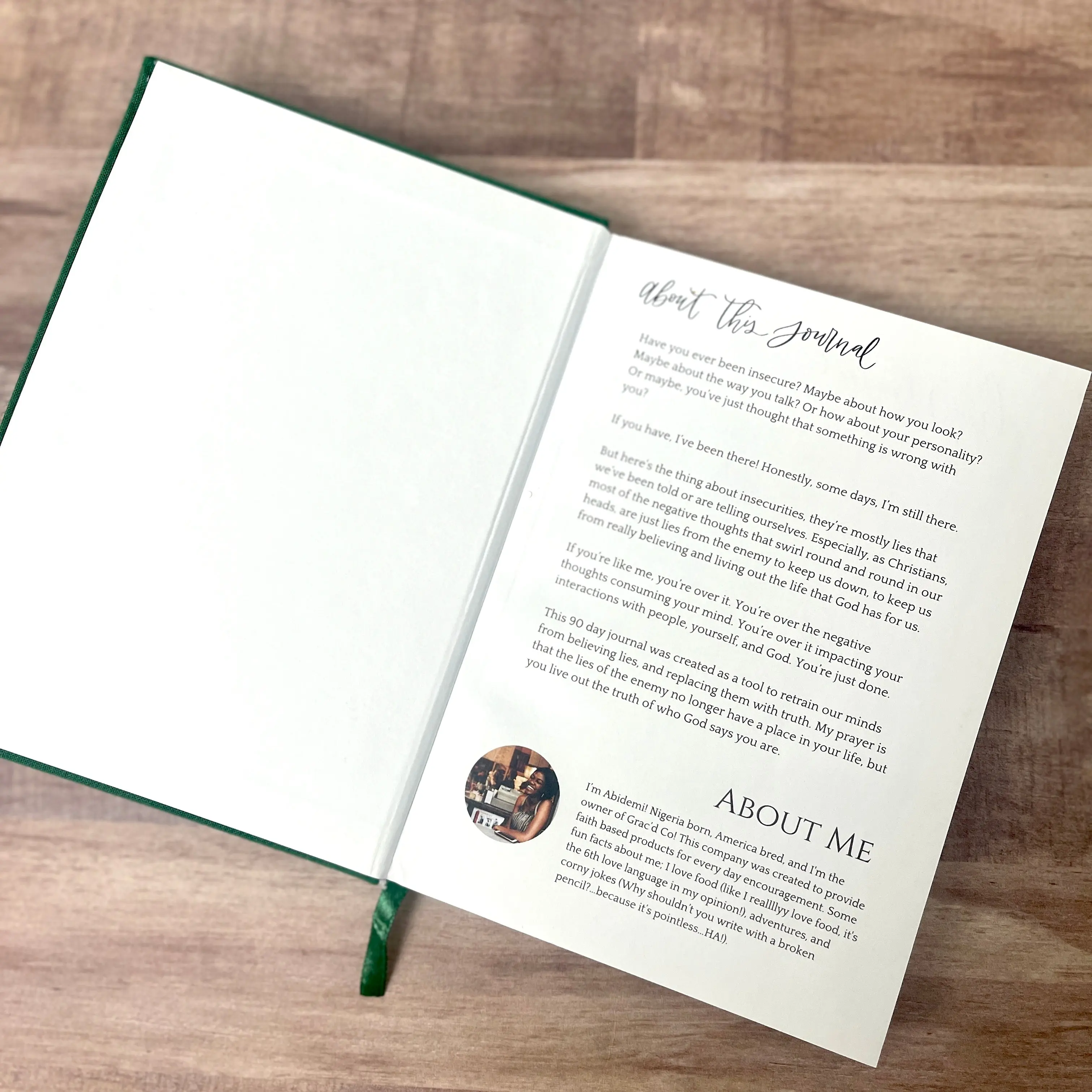 - Green cover with gold writing