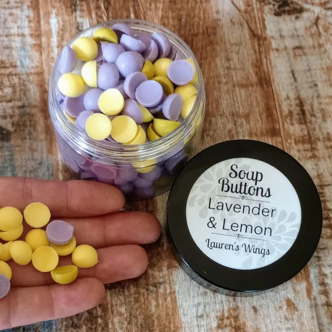 **These SOAP BUTTONS are the perfect size for single hand washes. Made from Shea and Glycerin with the added Sweet Almond Oil for additional moisture. Kids love them and parents too.