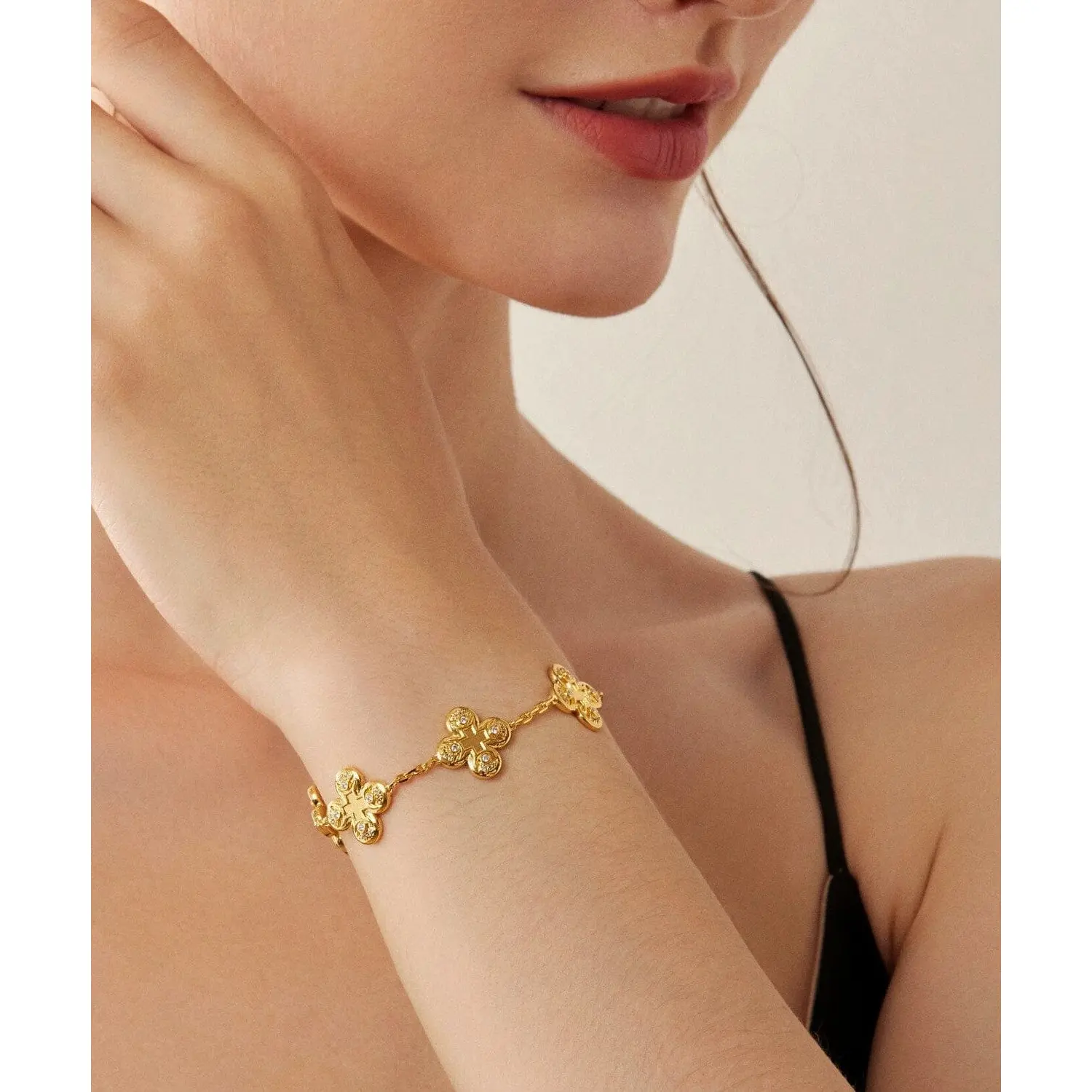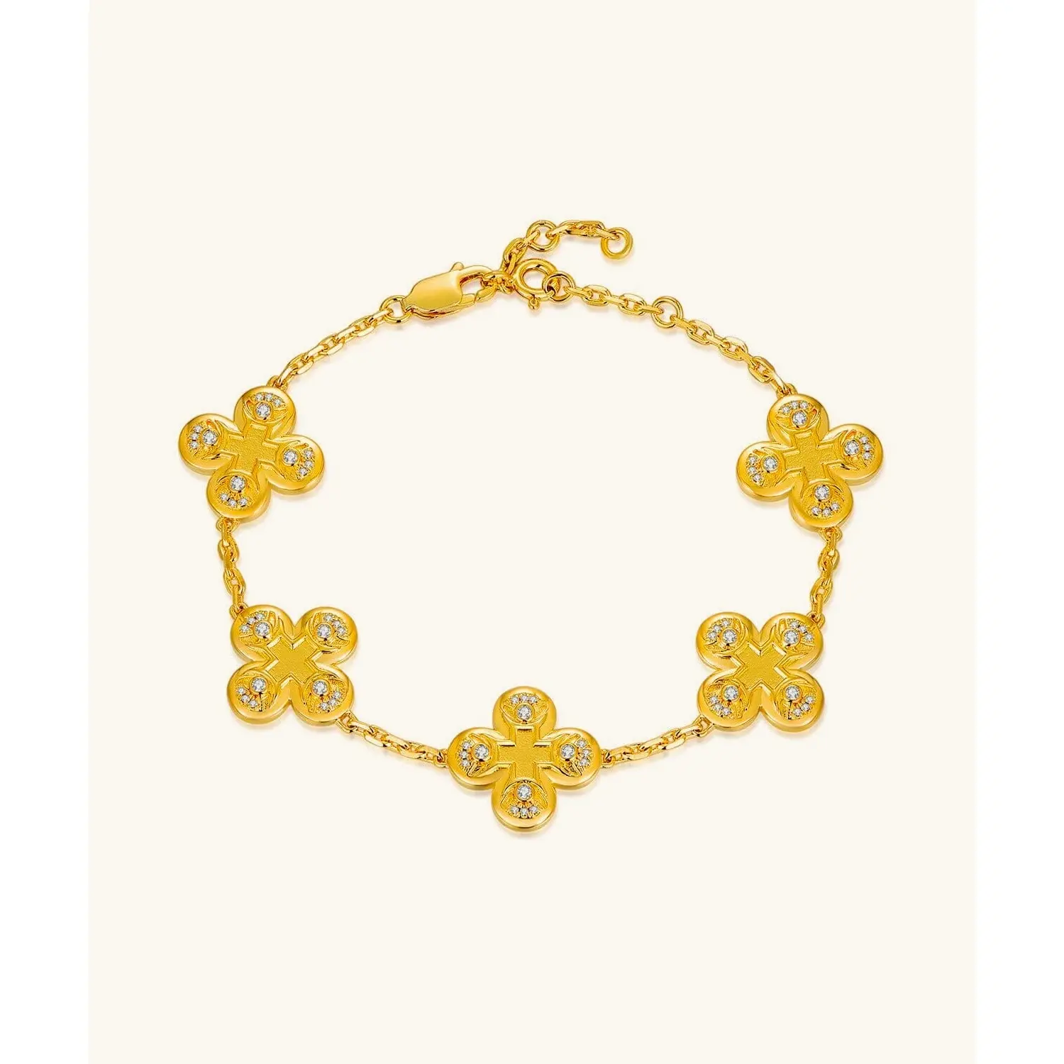Embrace the timeless beauty of the 24K Gold Clover Bracelet from Saurin Jiya. Make a statement. Embrace elegance.